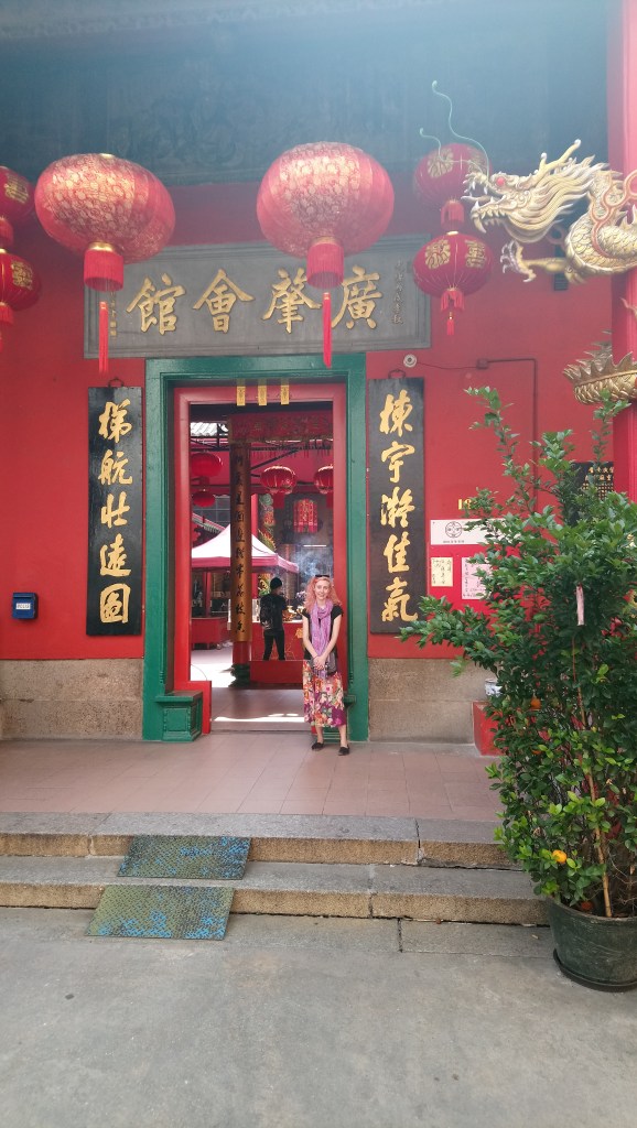 Also, right across the street from the beautiful Hindu Temple there is a Taoist Temple, Guan Di . There is believed to be a spirit in this temple that can turn one’s luck around, and we certainly needed some luck turning, so we stopped into this gorgeous temple for a visit.