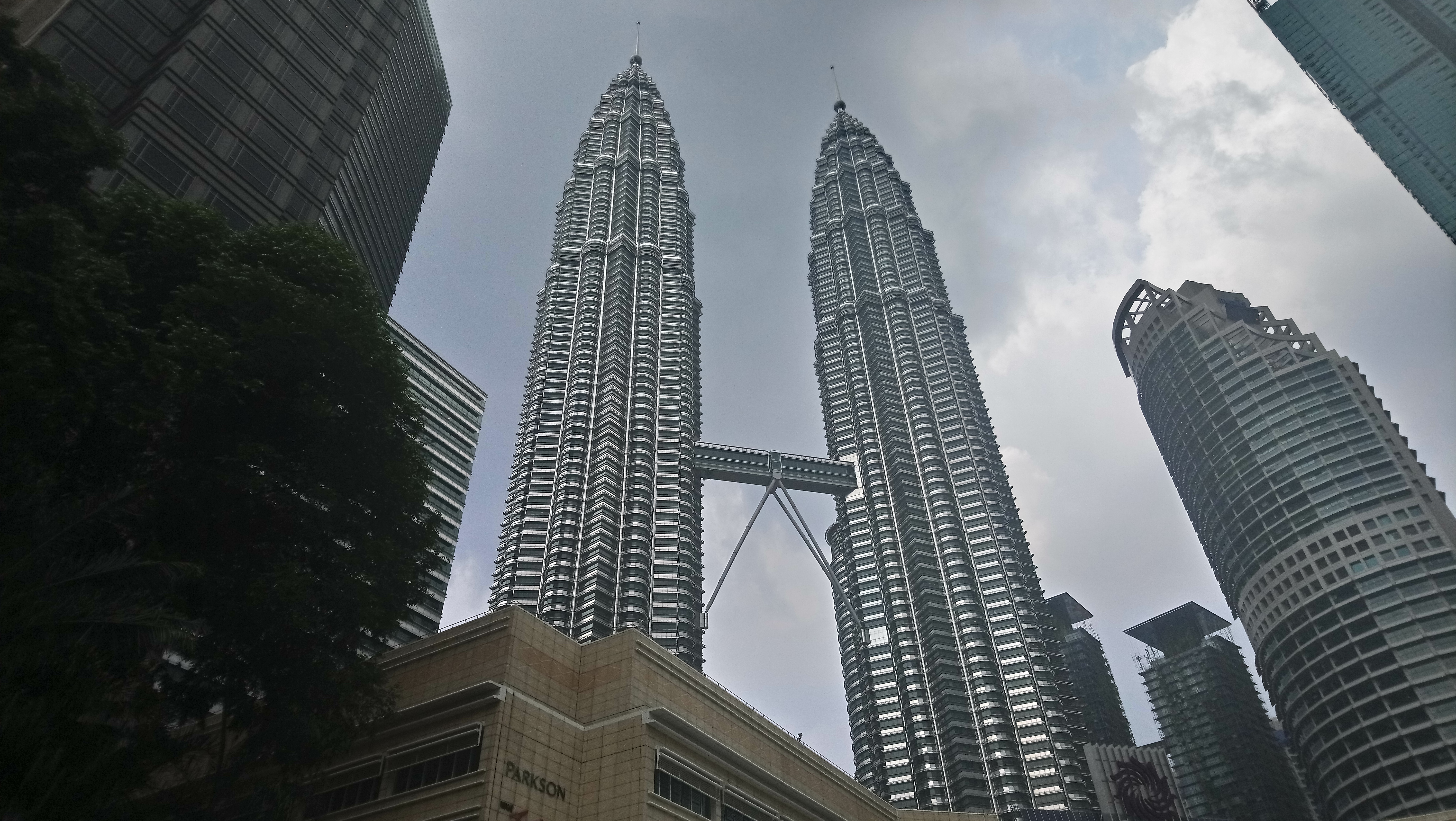 From the KL Forest Ecopark we walked to the KLCC Park to see the Petronas Towers. We had just arrived at the KLCC park when we became trapped in a torrential down pour. We sought refuge in a tiny wooden pagoda in KLCC Park, but it quickly became apparent that our pagoda refuge would not be sufficient. After half an hour trapped in the rain, we saw a slight break in the rain, and ran to the closest metro stop.