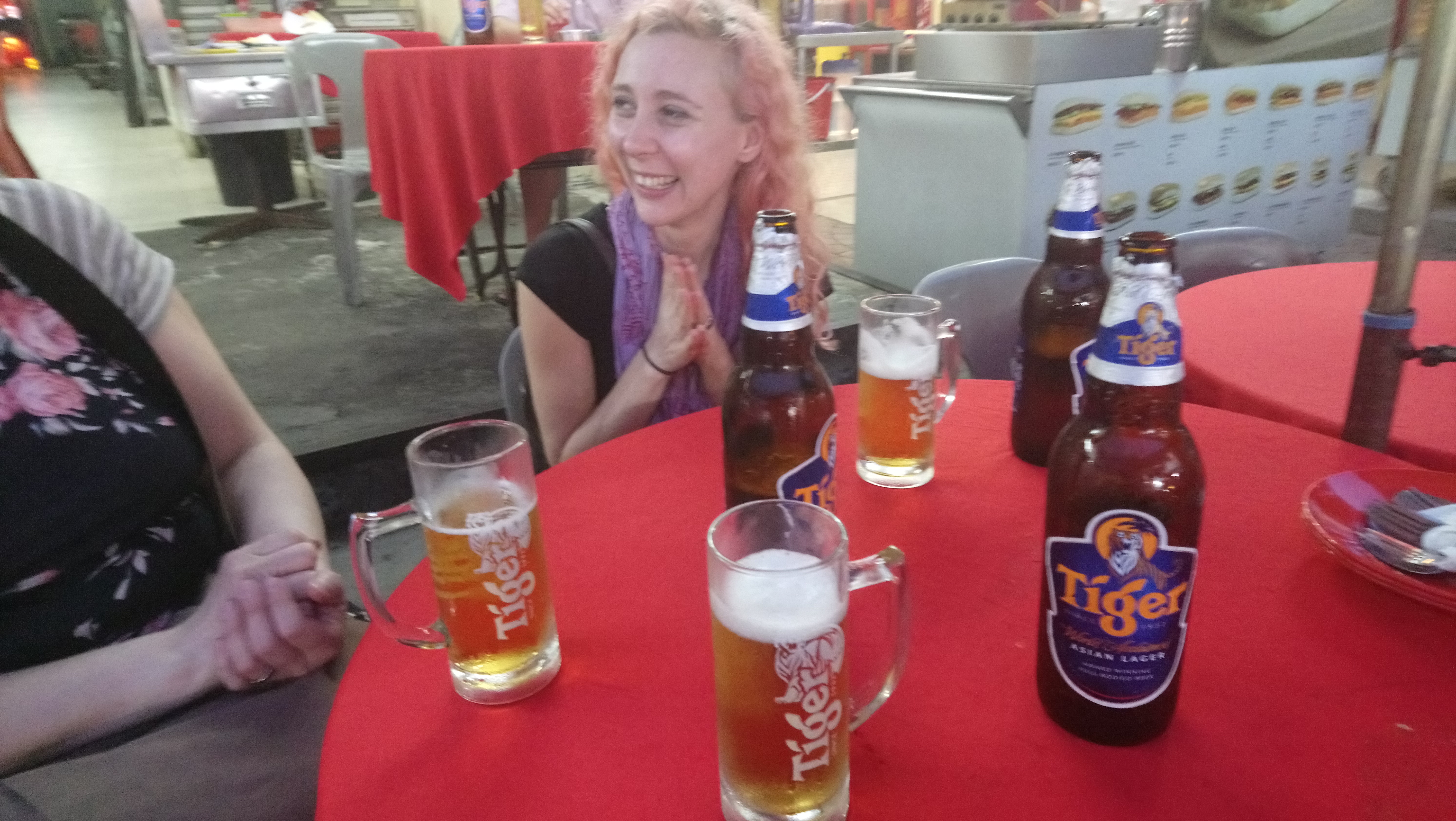 We took the metro back to our hostel, and stayed there until the rain had let up a bit. We decided to venture out for beer and dinner in Chinatown, only a short minute walk from our hostel. We had out first giant Tiger beer of the trip and finished our first full day in Malaysia, with a feast and in amazing company!