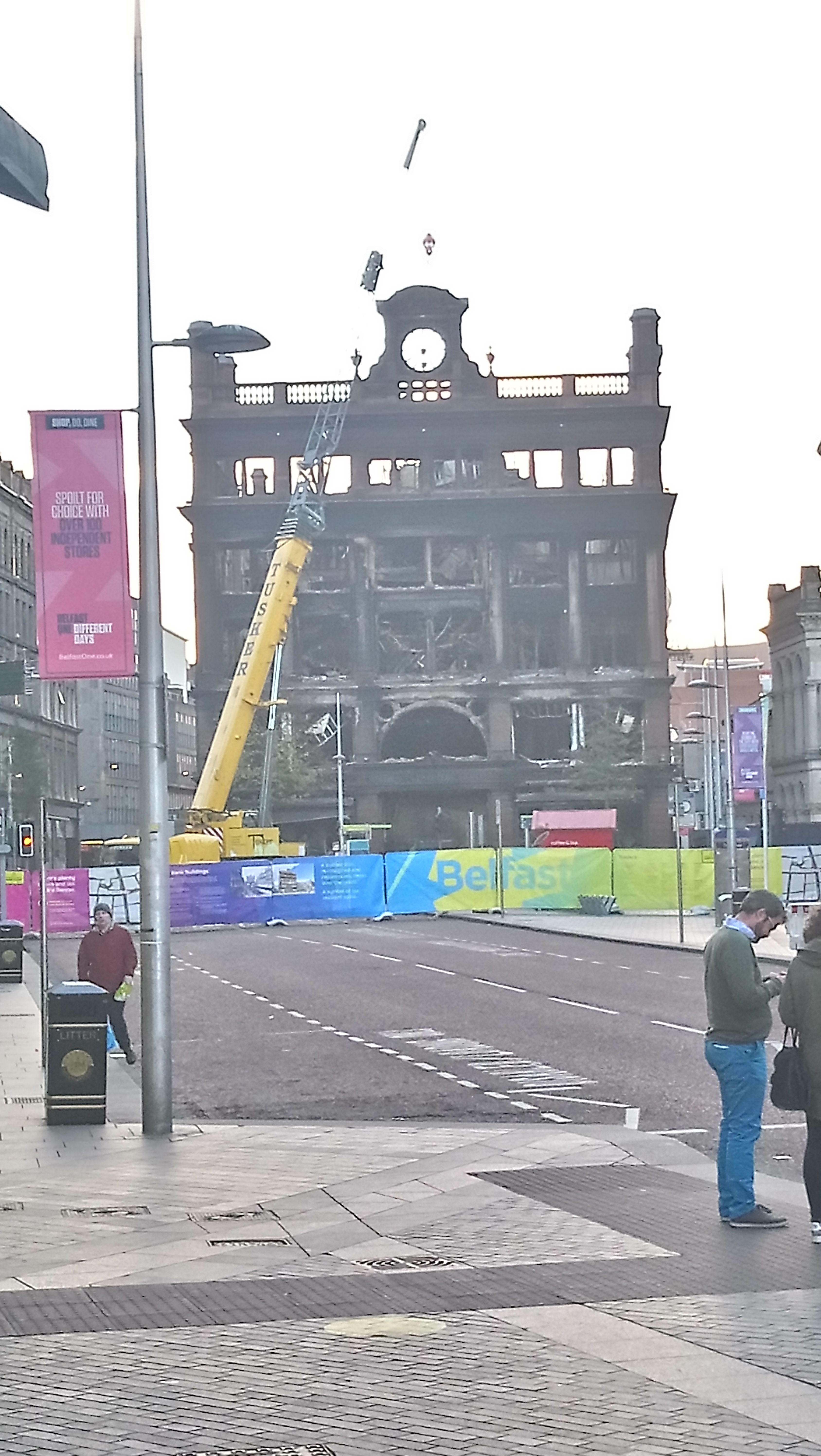 From here we walked towards the central area of Belfast. We came across some bizarre sketchiness along the way, (I’ll keep it at that) something that we would expect to see in our own home town. There had been a big fire only a few days previous in central Belfast, so most of the downtown was blocked off. So feeling a bit uneasy, we stopped off at a pub to grab a beverage and settle ourselves a bit.