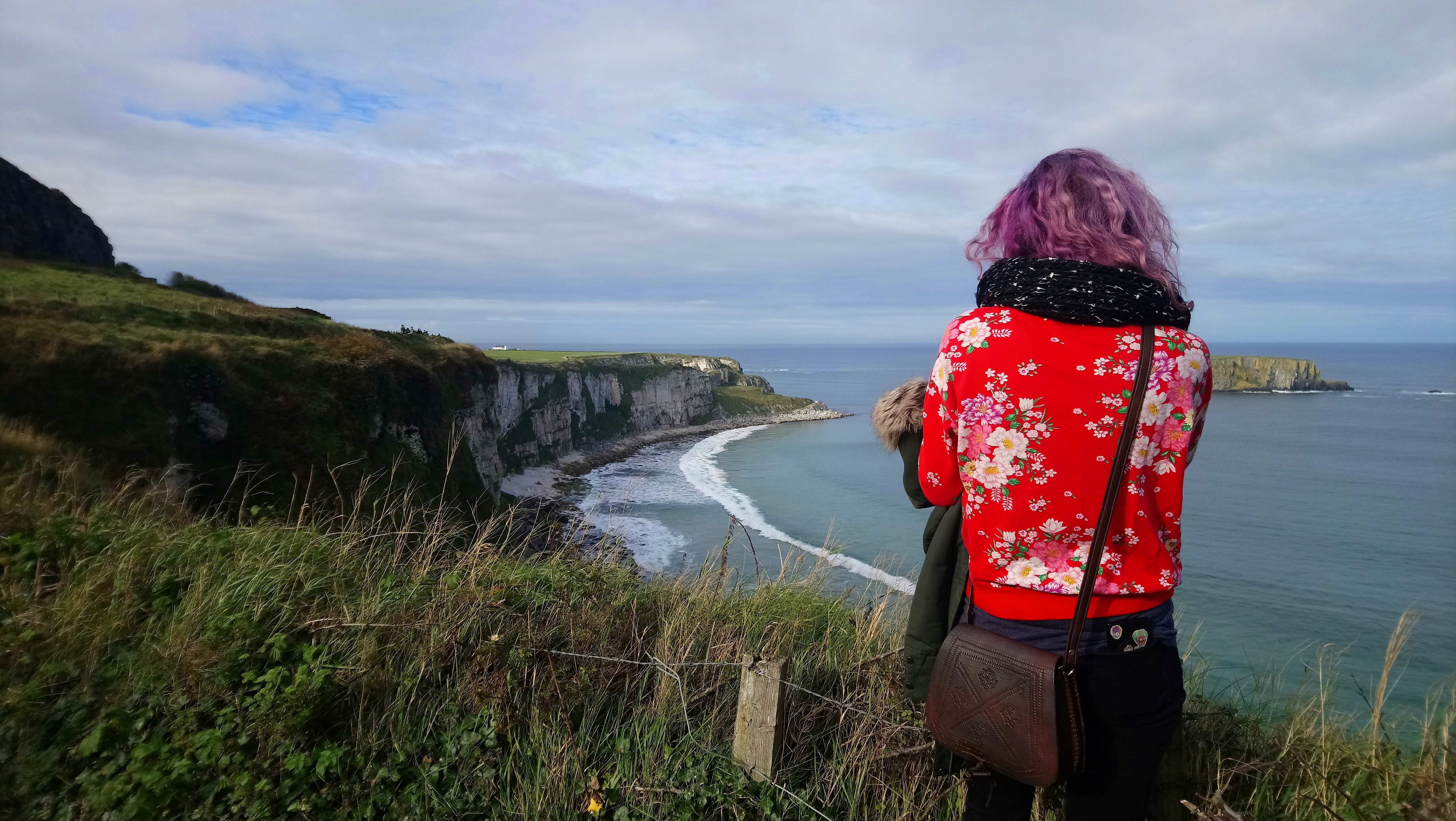 On our first full day in Northern Ireland we decided to book a tour in order to see a lot of sites around Northern Ireland. We booked with a company called Paddy Wagon Tours (which cost us 29 euro each). The tour left Belfast central Bus station at 10 am. The bus was late, so we waited around for quite awhile, and despite the fact that we were the first ones there waiting, we were the last too climb onboard the bus (all the American tourists were much pushier). We had to sit apart for a portion of the journey. Eventually we found two seats together at the back of the bus, but an incredibly rude American tourist felt it was her right to have the whole row to herself…. so we had to be pretty firm that we should be allowed two of her five seats….URG. Come on, people.