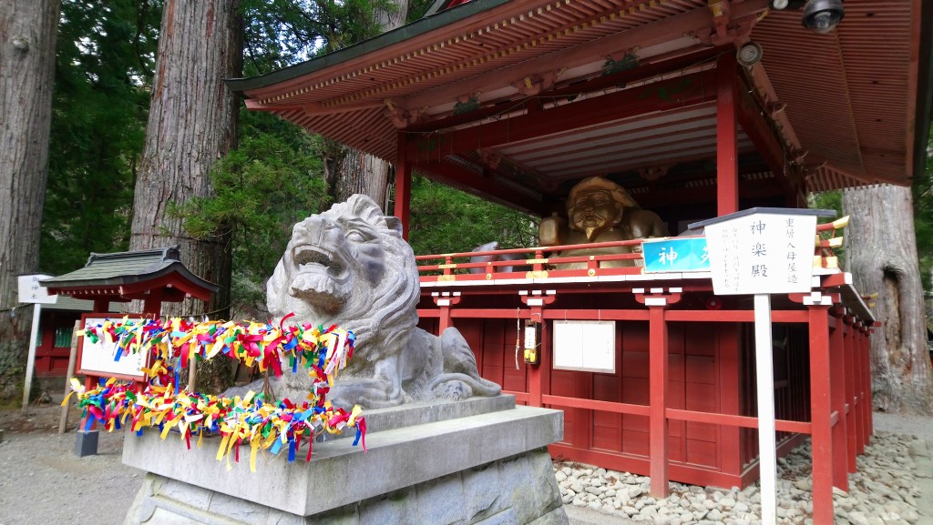 The first temple we arrived at in Nikko Park was Rinnoji. he decided to purchase tickets and enter the main shrine called Sanbutsudo (for this shrine only and tour it is 400yen). We got stuck in a Japanese tour, but it wasn’t too long, and this allowed us to see the three wooden, but golden clad figures: Amida, Senju-Kannon “Kannon with a thousand arms” and Bato-Kannon “Kannon with a horse head” . Being able to see these figures made the tour completely worth it!! No photography is allowed.