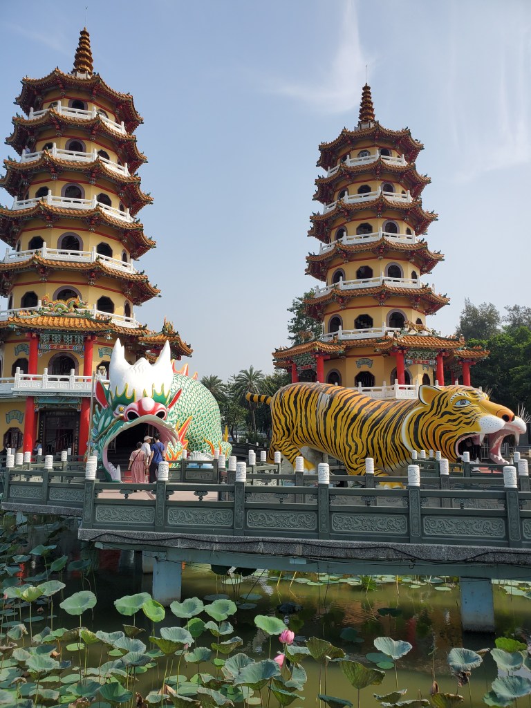 We woke up at 7am and decided to take a day trip to Lotus Lake to see all the pavilions surrounding it. We took the MRT from Formosa Boulevard to Zuoying Station (where we had arrived by THSR the day before)and walked about 20 minutes to the lake. I believe there is a bus as well, but we found walking to be lovely and lost of the walk was through a park (even a wedding set up).