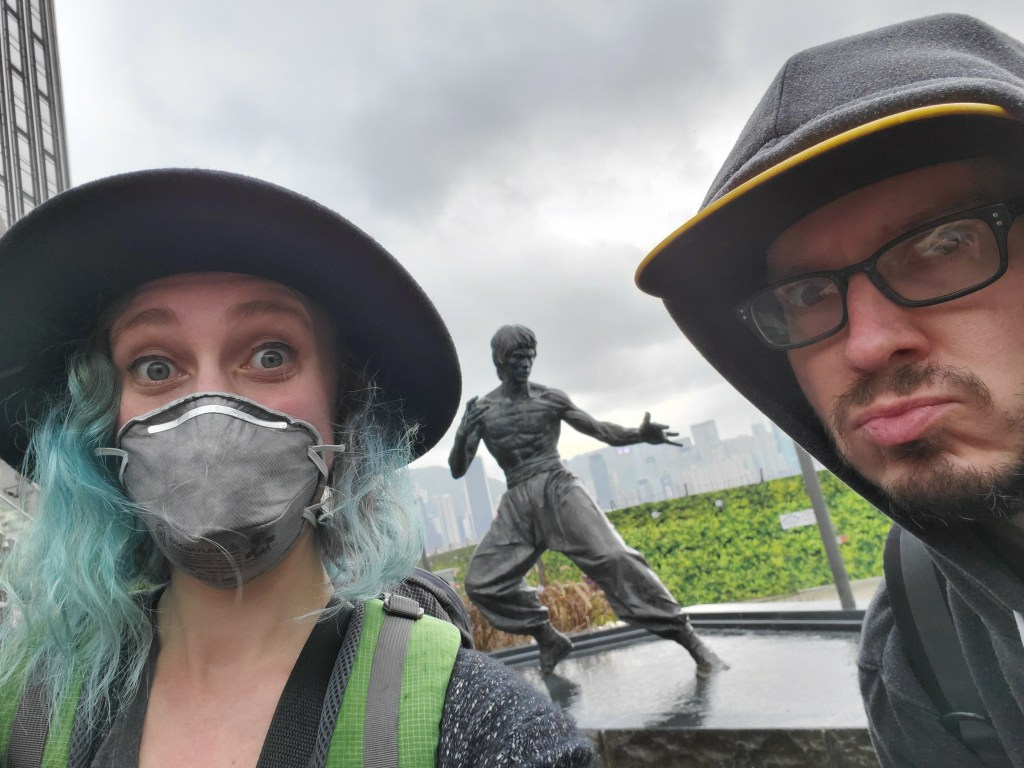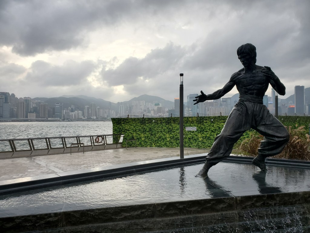 We filmed some rap takes for Jives (he was remaking the video we filmed in Hong Kong in 2016). We also bought coffees and two onigiri (seaweed and rice snack from Japan). We sat by the water and had our breakfast. We then walked along the Avenue of stars , which was under construction when we had visited last time in 2016. We say Jackie Chan and Bruce Lee’s hand prints and the iconic Bruce Lee statue in it’s new home, along the water front.