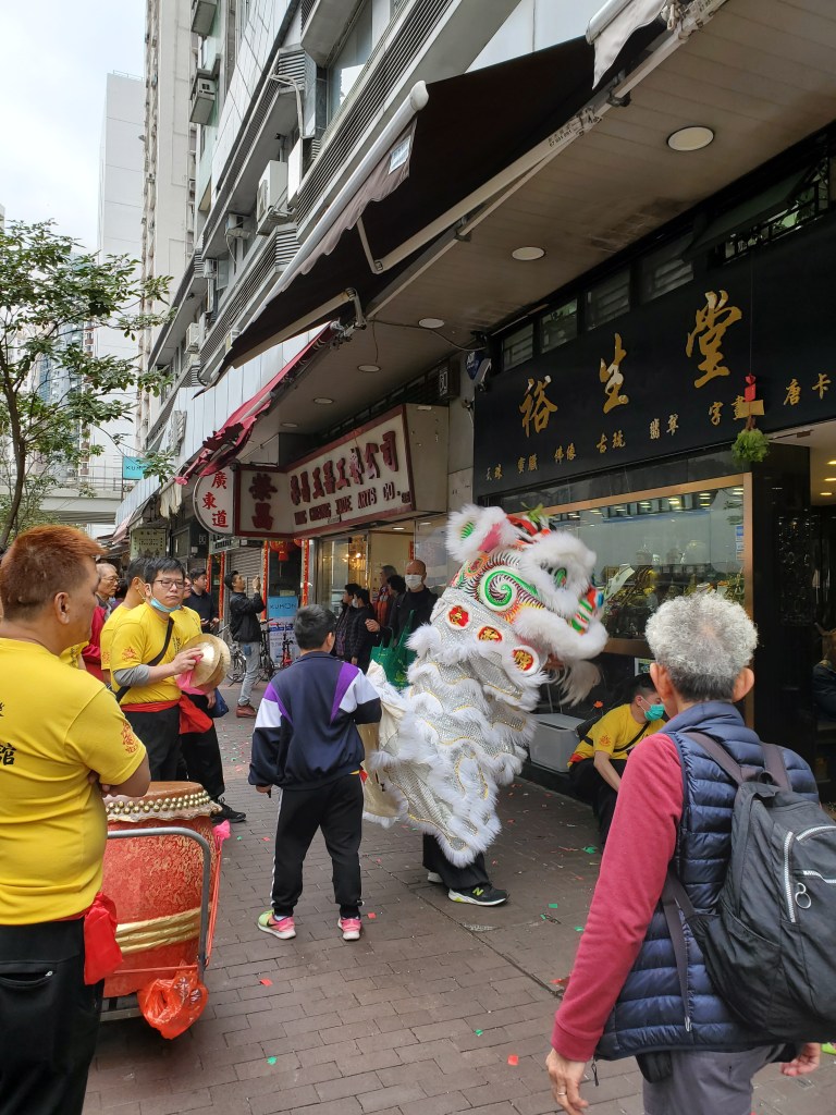 We then headed to Temple St. and saw a lion dance celebration. The traditional lion costume dressed man was blessing local businesses and eating there fresh green leafy offerings. We watched this procession for quite awhile , and even got a picture with the lion!