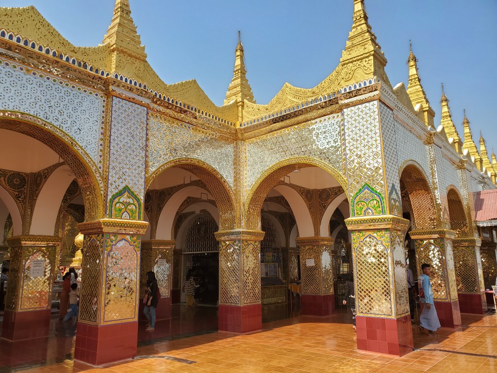 Another layer we visited was covered in colourful mirrored tiles. Endless pillars of colourful glass, reflecting the hot Mandalay sun.