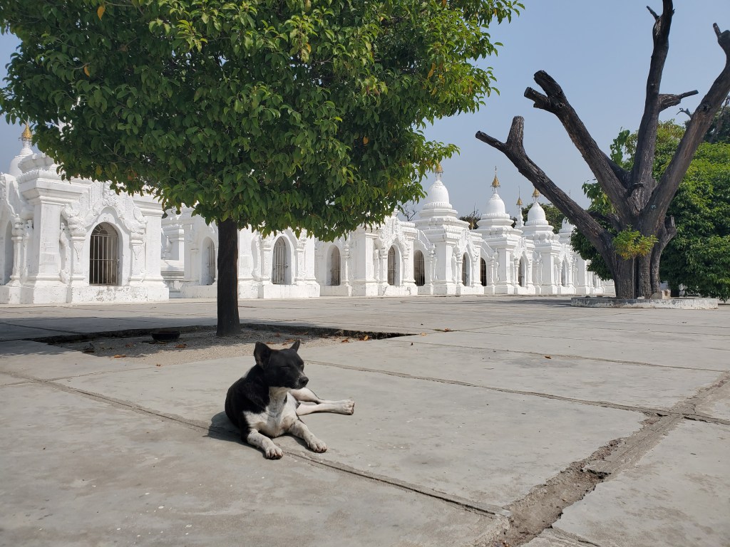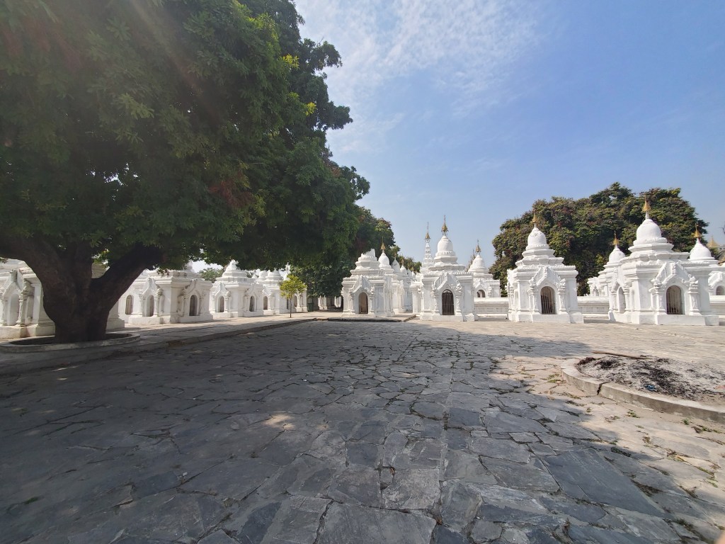 After visiting Shwe Nan Dae Kyuang, the teak monastery and Atumashi Kyuang, the Incomparable Temple, we walked a short way to Kuthodaw Pagoda.