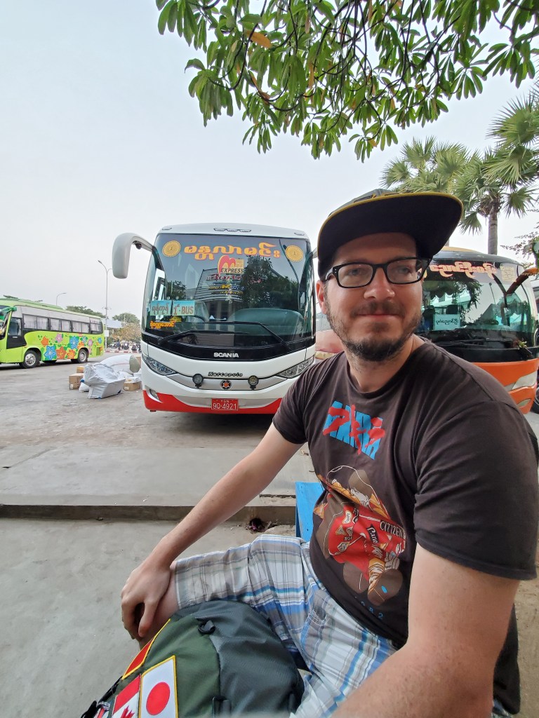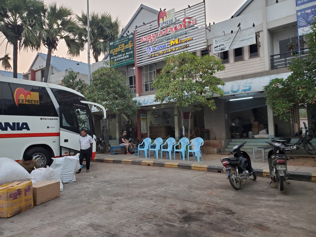 The hotel had arranged the cab the night before for us, and it cost us 12000 Kyat for the 20 minute ride. He dropped us off right at the Mandalar Minn station (the company we used) at the bus terminal. We arrived just before 7am. A nice man at the desk checked us in, he literally just check marked our paper tickets (make sure to print your ticket off). We booked through 12goasia , which we have used many times.