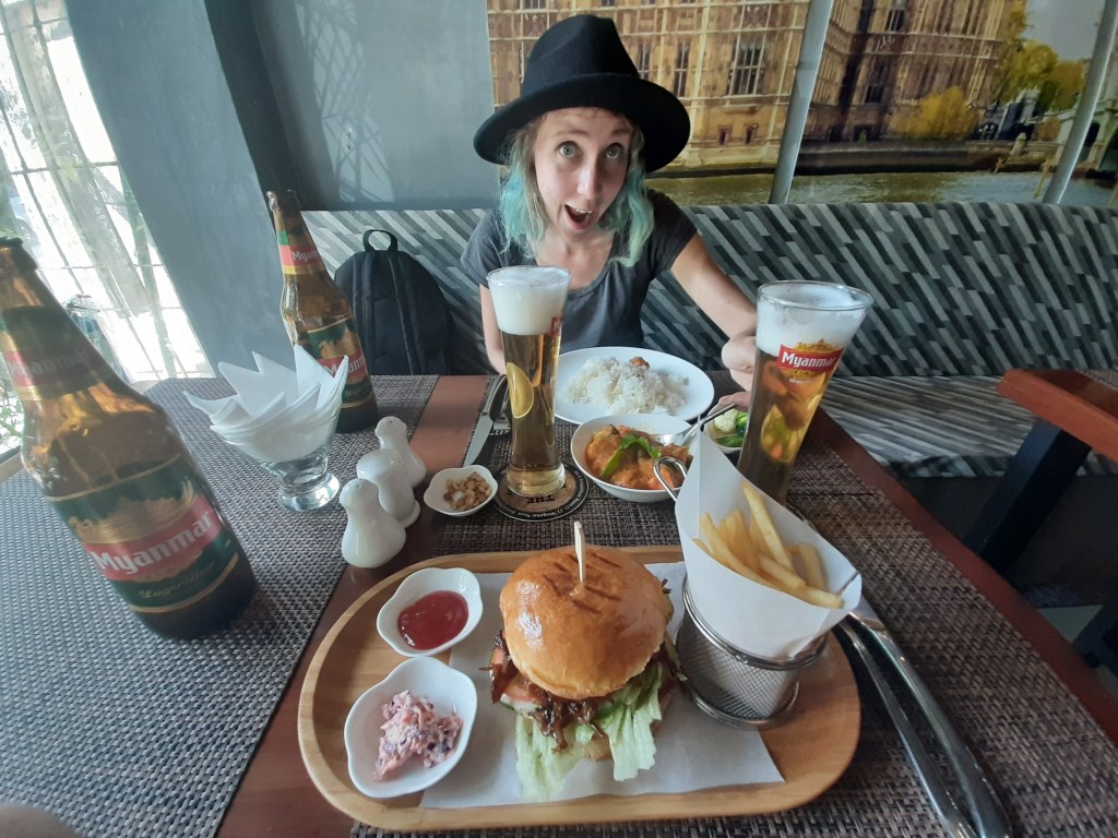 We then walked back to Kanadawagyi park, stopping at a restaurant “the Haven bistro” to have lunch. I had a veggie curry, and Jives had a pulled pork sandwich. I love Myanmar curry, it’s a mixture of Japanese, Indian and Thai curry, so rich in gravy flavour, but actually spicy! Plus it is so easy to be vegetarian in Myanmar.