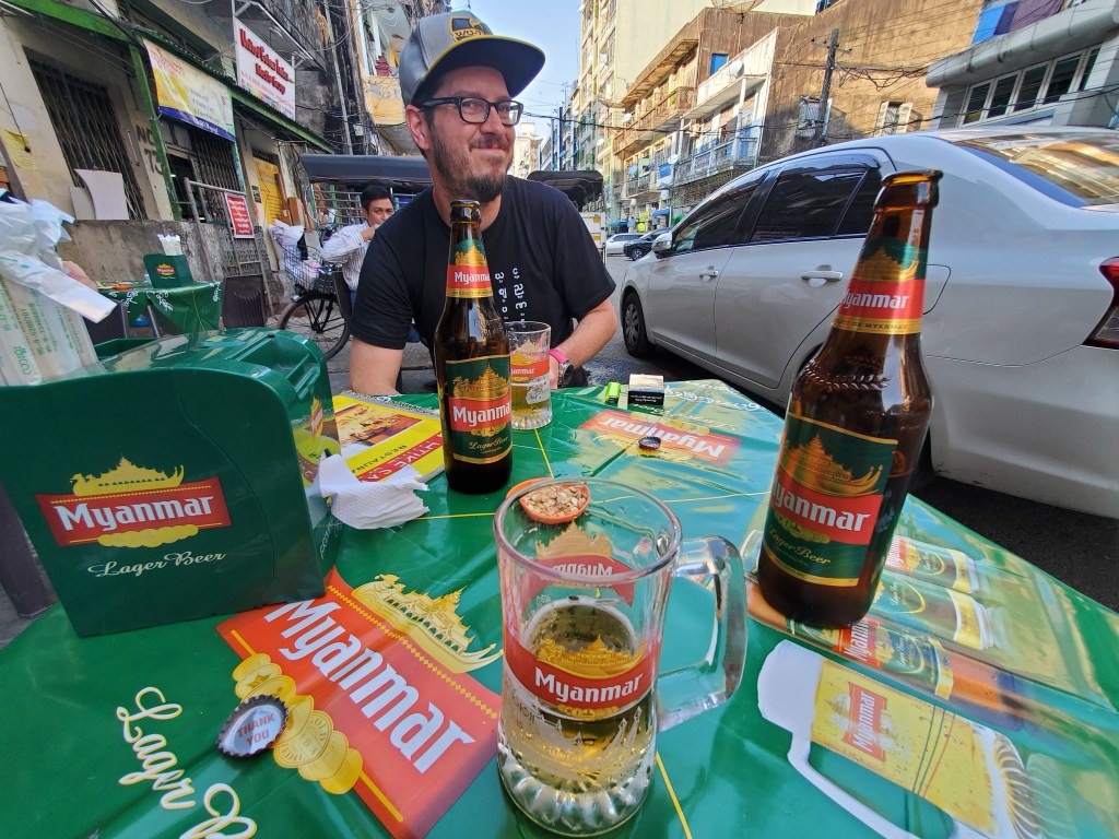 Afterwards we returned to “Ichiban” the Japanese restaurant we went to on our first night back in Yangon. I had a delicious veggie curry bento with salad, miso and kimchi. Jives had a katsudon ( a pork cutlet breaded) on rice with an egg. It was delicious and cheap. We then grabbed a beer to have back in our room as we packed up our stuff.