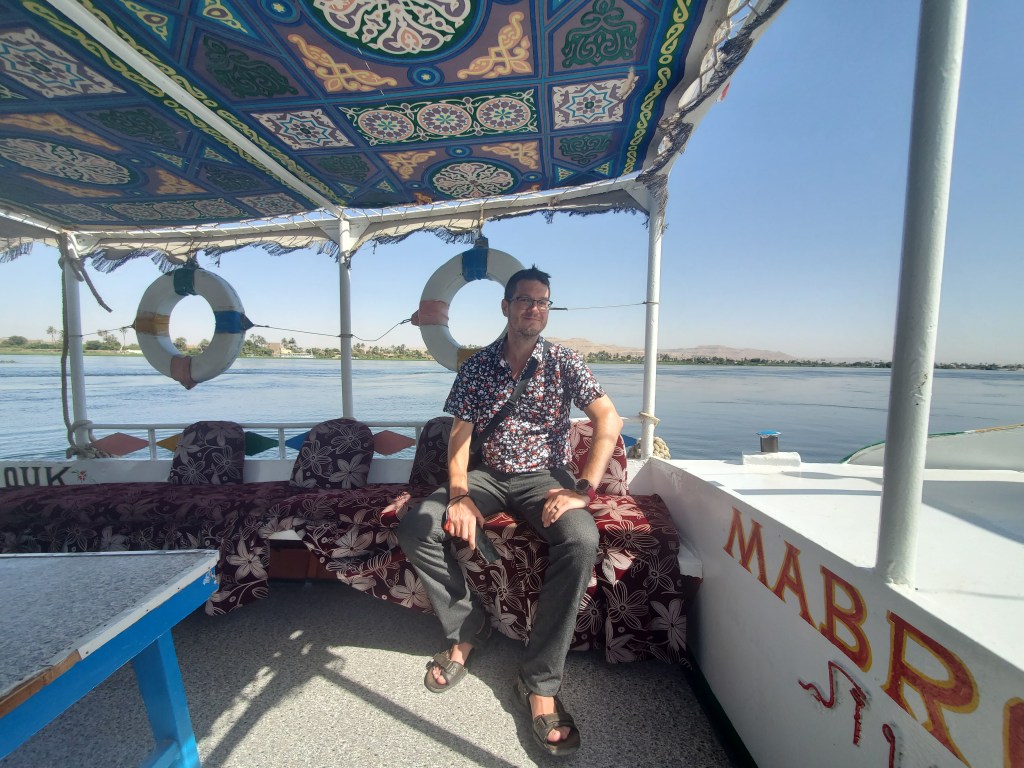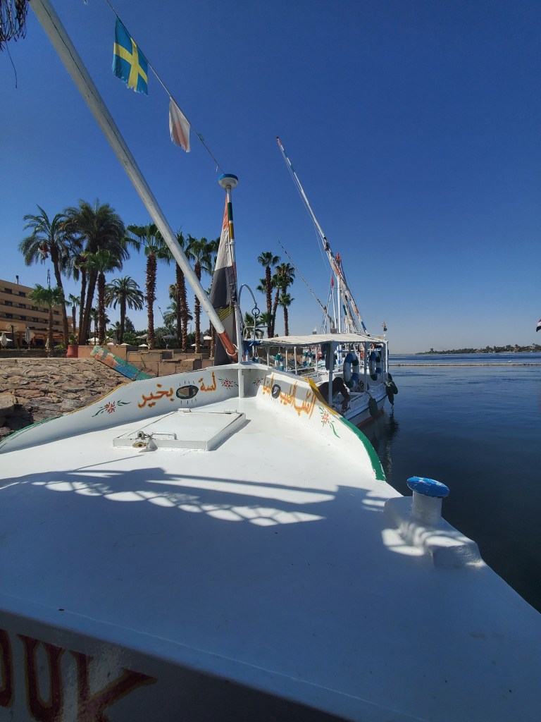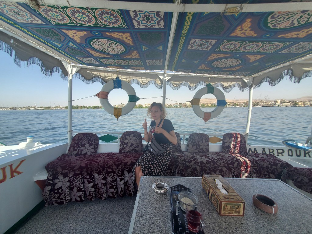 The following morning we woke up pretty early to pack up the rest of our stuff before heading out for one last activity before our flight to Cairo. We had a quick breakfast and then walked to the waterfront to negotiate a Nile River boat for an hour. It ended up costing us 350 Egyptian pounds for an hour on the Nile. We went all the way to Luxor Temple and back. The boat owner made us a delicious hibiscus tea that we sipped as we motored by cranes and rushes. It was really beautiful. I would totally recommend hiring a boat on the Nile if you donβt do the typical Nile River overnight cruise.