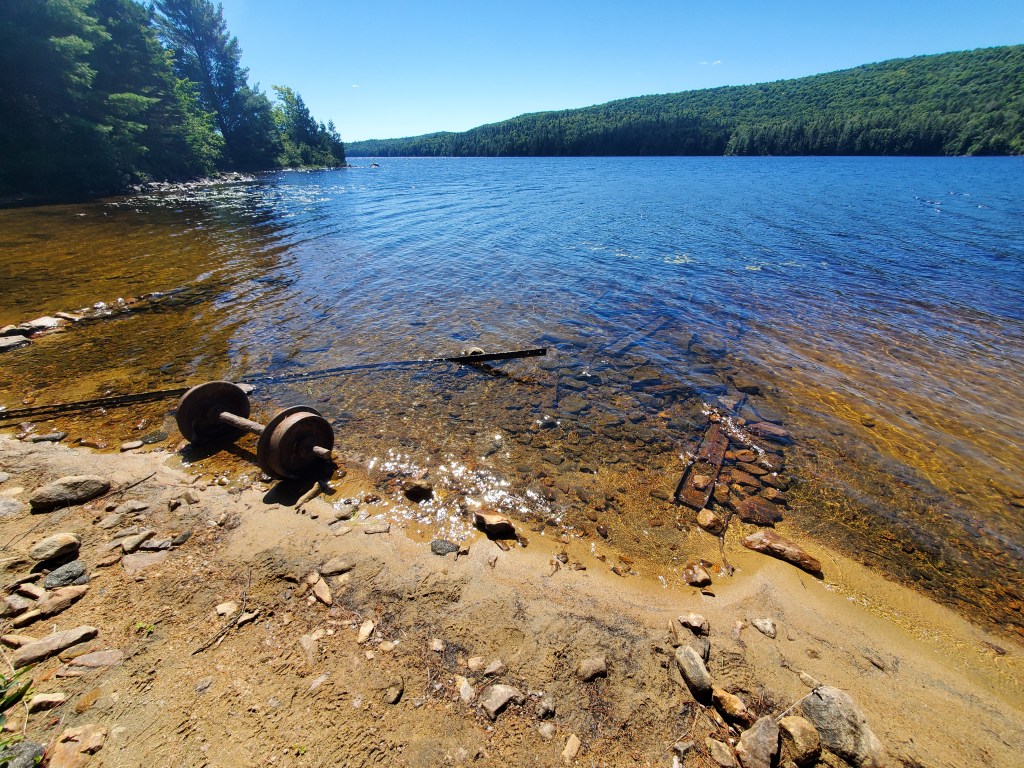 We successfully managed to portage back in a single portage to Aura Lee Lake. Jives carried the canoe and I carried everything else, this saved us a lot of time. Aura Lee to Cedar Lake is my favourite part of the trip. We passed the site on Aura Lee that I had stayed at on a previous trip, and then passed through the bridge tunnel under the train tracks. We took our time and marvelled at the gorgeous scenery and day. Once we got to Cedar Lake, the paddling became rough. The waves were much bigger than before and we really had to push to make any headway. We stopped at a site with old train tracks leading into the water, before the last leg of the paddling, the worst paddling we had had all trip, with very large waves. We arrived back at the Brent Store around 2pm and returned our boat and paddles.
