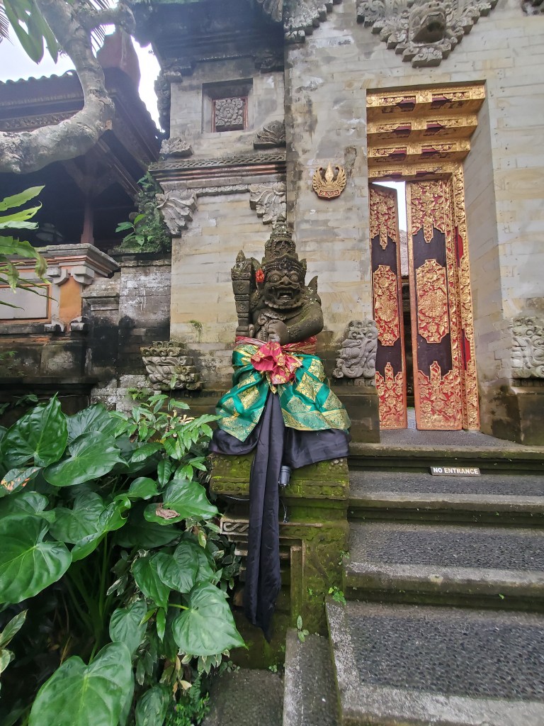 After thoroughly exploring Pura Dalem Ubud, we walked towards Ubud Palace. At this point the weather was getting pretty severe, the wind was picking up and there was almost constant thunder. I wanted to enter Saraswati Temple but it was so busy (we went back the next day) and my anxiety said “no”, so instead we went into the Ubud Palace. We walked around the beautiful gardens of the palace and explored a bit until the rain began, it came down hard! We retreated to our favourite corner store to have a drink and hide from the rain. There were school children everywhere splashing in the puddles and running down the street, they were clearly having more fun than us! We made it back to our room and dried off a bit before heading out for supper at “C9UPAC” a Korean fusion place. I had delicious bibimbap and Jives had a fried chicken dish where you wrap everything in lettuce leaves. We then walked back to our hotel and played pictionary in our new book we purchased at the department/ grocery store.