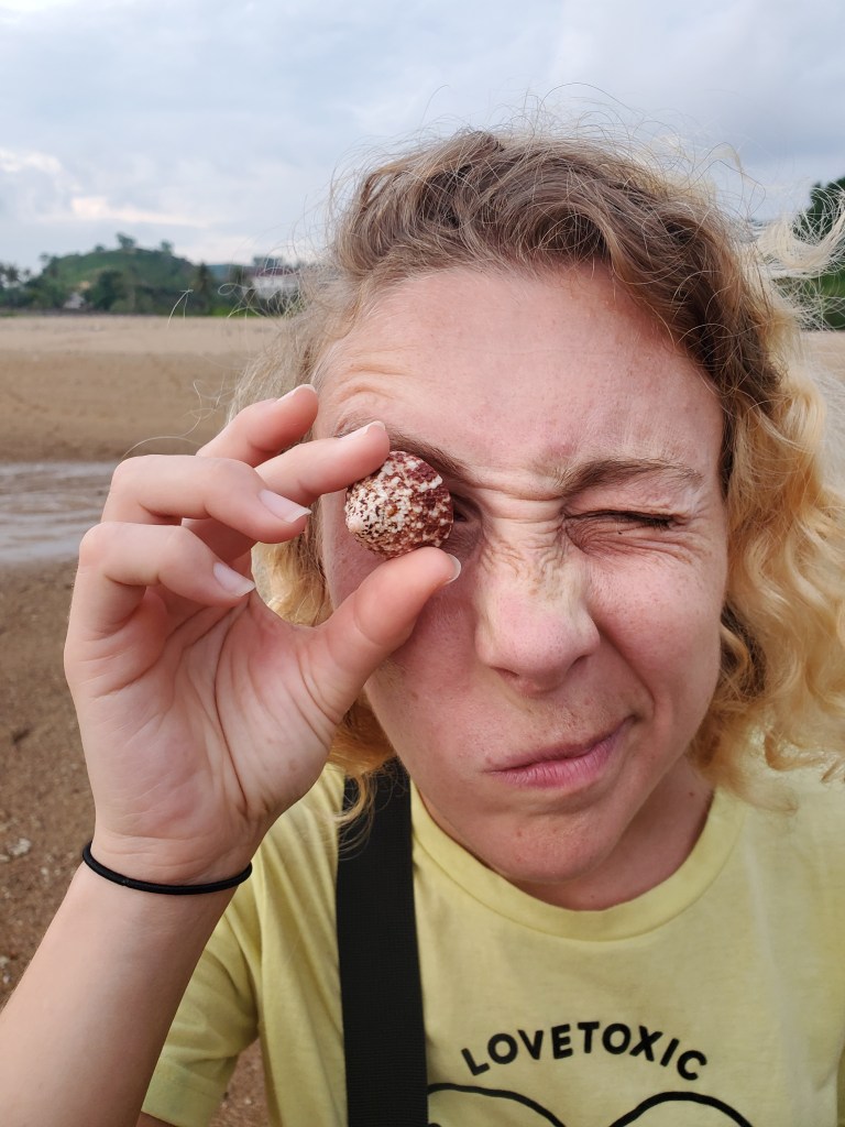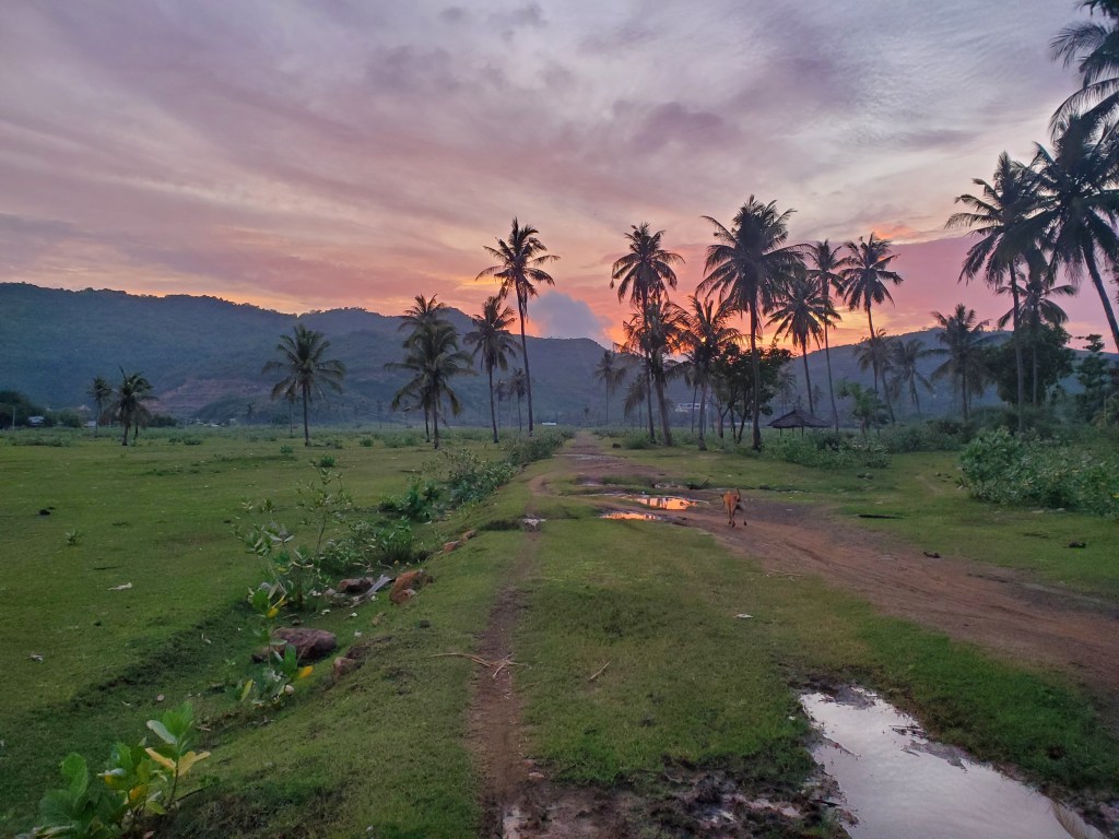 It was fun scaling the rocks that had been previously underwater and examining the coral and seashells as well as an army of bright pink crabs. We set off back to our hotel as the sun was setting and encountered the most beautiful pink sunset behind the mountains and the palm trees. We got back to our hotel and played our pictionary game until we decided to order food to eat, two veggie currys. The currys were delicious, so good, like some of the best food we have had on the entire trip. We washed them down with two large Bintang beers. We went to bed around 9pm after sitting on our porch for quite awhile.