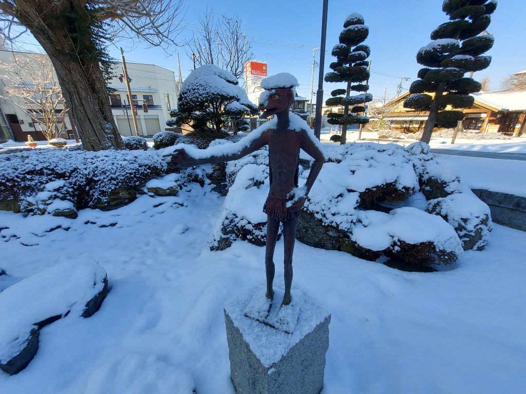 We then walked around Tono city and tried to find the pokemon manhole cover that is there, but failed (probably because the snow was so deep). We then went towards the train station and saw the kappa shaped police box and the tengu that resides in the tourist information tower. We then went into the train station to warm up by their heaters. A nice lady tried to talk to us, she was excited to talk to a foreigner! She spoke practically no English and we spoke almost no Japanese, so it was an interesting conversation. Jives talked to her about a film and Tom Cruise, apparently she was a huge Tom Cruise fan.