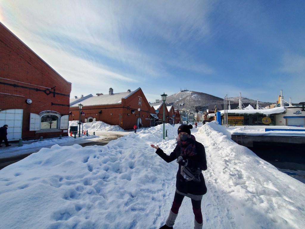 The waterfront was gorgeous and you could see the snow covered mount Hakodate in the distance (near). A narrow bridge brought us over to the marina and the iconic red brick warehouses. We took quite a few photos and video before rushing back to the Eki (train station) to get the street car back to Yunokawa-Onsen station to go see the snow monkeys.