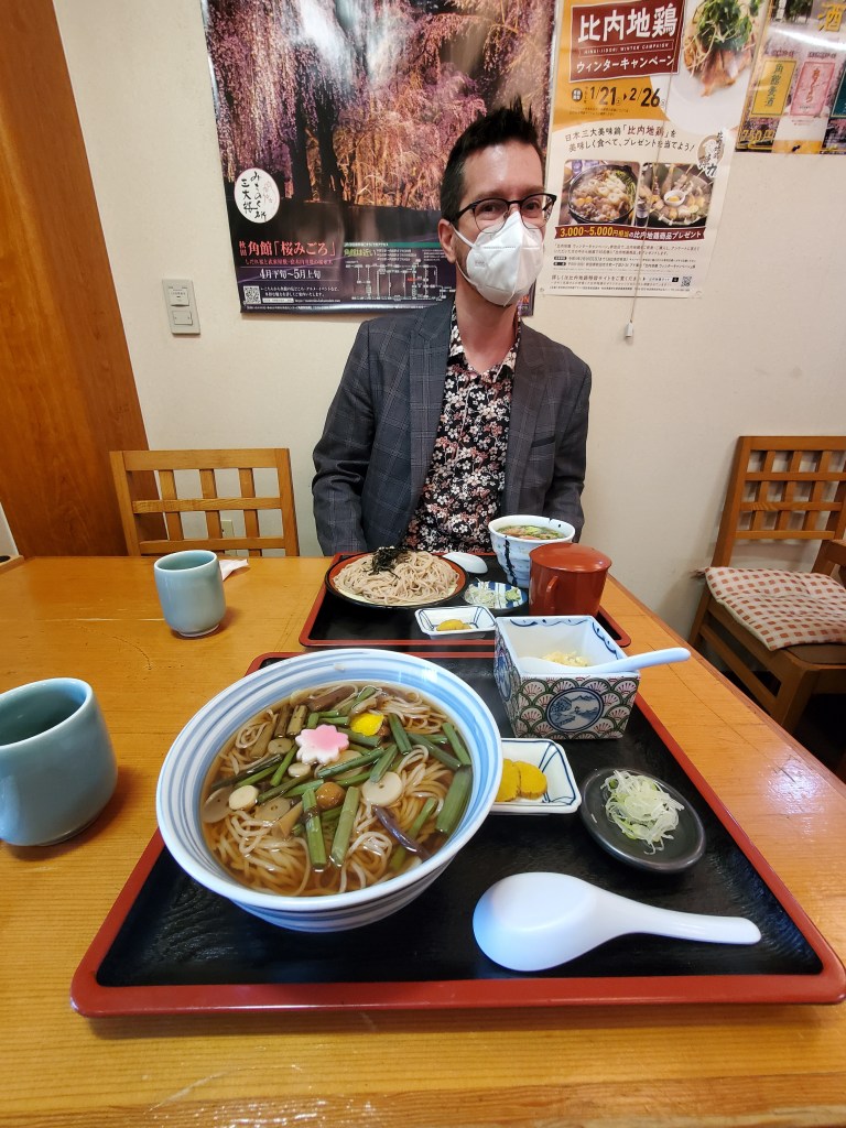 We decided to have a local day in Kakunodate after all the train and transportation days we had been having. I made us a coffee using the little drip things from the kombini and then went to the Family Mart to get us some breakfast onigiri. I also got an oden set from the kombini to finally try oden. Oden is a winter specialty in Japan, various items like fish cakes, tofu, root veggies etc are boiled in a hot soup broth. It is a great snack for the cold Japanese winters.