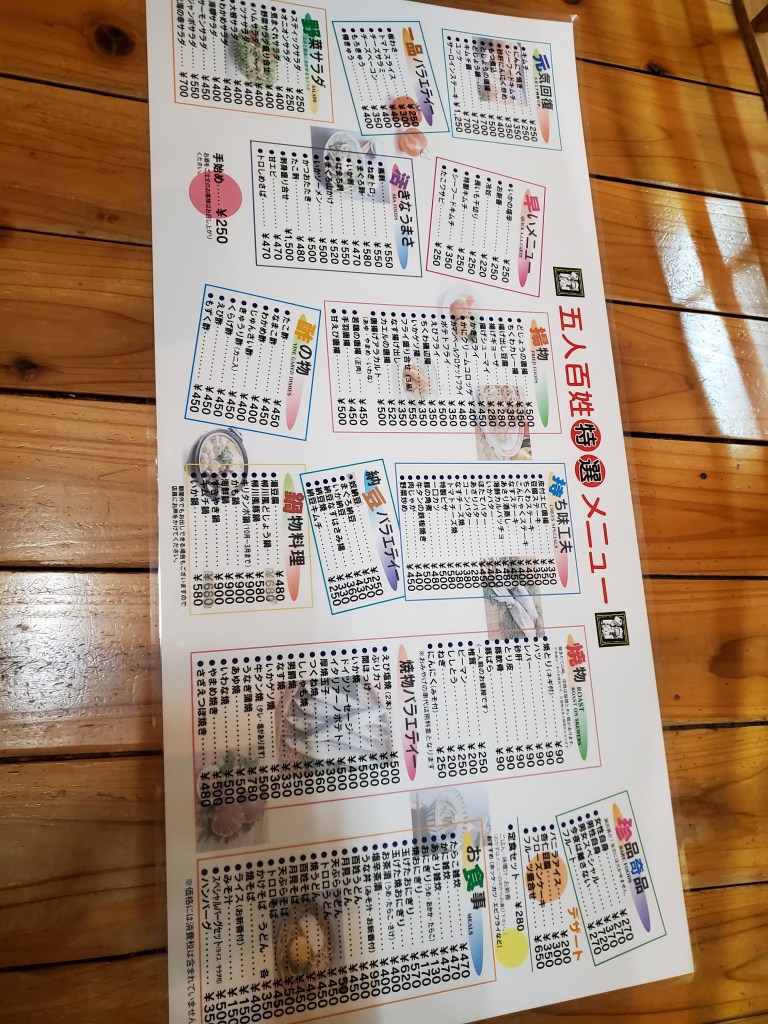 Entirely Japanese menu at the Izakaya in Kakunodate Japan