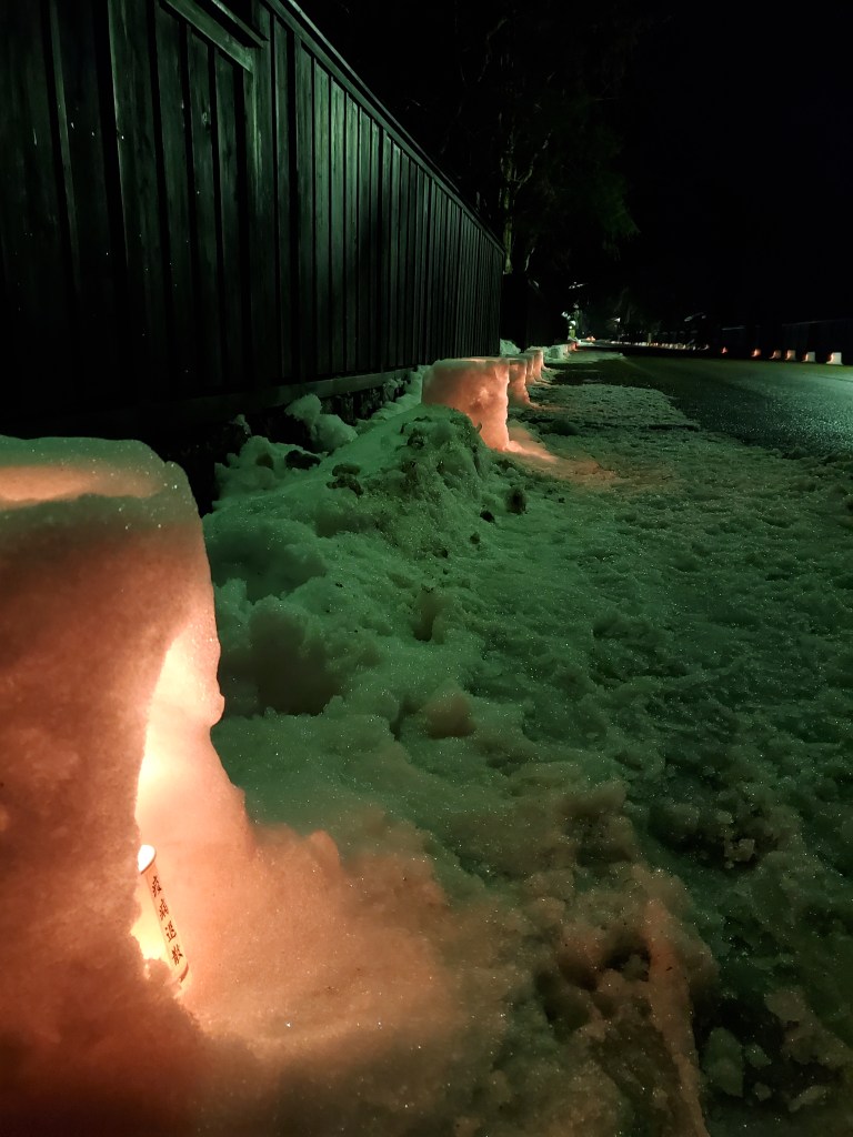 Along the way to the shrine we saw a dog sculpted out of snow and more displays clearly intended for the festival the next night. We came across a really interesting roadside shrine, clearly the river running through it was from a thermally heated source, as steam was rising off the water and from the sewing grates on the road.