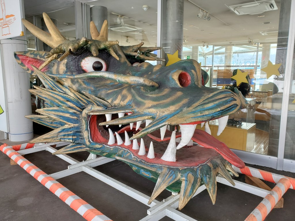 Tazawako is full of dragons and huge dragon heads on the platform. There is a tale from Tazawako of a young girl who turned into a dragon at this lake. The tale says that the girl looked into the lake and saw that her reflection was beautiful. She wished to be beautiful forever, so she was turned into a dragon and lives in the lake to this day. You can travel the lake on a circle bus for 1210 Yen and see the statue of the girl that was turned into the dragon, as well as a beautiful red torii gate.