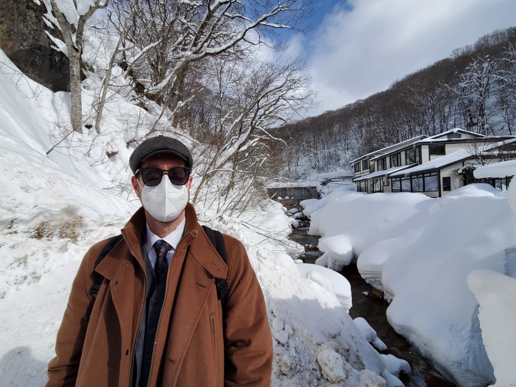 We changed into our yukata. Jives had an extra large to try on and it fit with room to spare, a first on this trip! I put on a medium size yukata, although a small one probably would have fit, being a bit taller I usually go one size up. The Yukata was white and brown with a bright yellow belt. The next layer was the vest which was either red or green and then there was a top layer of a quilted jacket. We set out on our first onsen adventure. The bath had two sides and a mixed gender bath outside. At 8pm the segregated sections changed so that men and women had a chance to experience all of the baths. First off the women had the left side changeroom and bath and the men had the right. I entered the chance room and chose a basket to deposit my clothes in and proceeded to the wash area. There were four wash stations in the same room as the first bath. I washed and then went outside to the mixbath to meet with Jives. The ground was so cold and covered in ice and snow. I got in the mix bath and no one was around. Jives joined me soon after. This mixed bath was incredible and honestly the highlight of the trip. Snow was falling down and the mixed bath faced the waterfall. The snow was piled so high and the temperature of the water was so perfect. With the cold snow falling and landing on your face, it created the perfect balance. We sat there quite a while on our own, and about 30 minutes later a man arrived, looking bashful. I didn’t mind at all, as we had been in the public baths for weeks and I was growing accustomed to it. As well, the water was very dark and no one could see below the waterline. Then a few minutes later another man arrived, and another and another… until it was me and four men in the bath. The first man that had entered turned to me and said “ I hope you don’t mind it’s men’s bath” and I said “no it’s fine” thinking he meant there were just so many men in the mixed bath with me… then he said “no, the mixed bath is back there, this is the men’s bath”. SHIT. I said sorry (gomen nasai) soooo many times and ran from the bath in terror. I had committed the ultimate onsen faux pas, I was mortified.