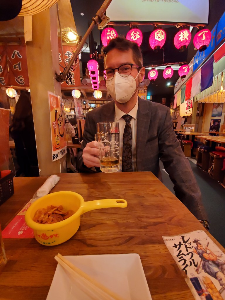 We visited an arcade where Jives tried his old friend the Taiko drum arcade game. We then went to a restaurant under the new Miyashita Park, an izakaya… it was actually pretty terrible despite looking amazing and super 80’s nostalgic. The staff really didn’t want us in the restaurant, which was a rough experience. This happens sometimes in Japan, and we are pretty lucky that this was our first experience with staff not being incredible at a restaurant in Japan. The food was terrible and they didn’t have about 50 percent of the menu available… We asked for the bill and waited about 40 minutes to get it, as pretty much everyone else around us got their bills and food. The decoration in the place was really cool, sort of 80’s vibes with lanterns and small tables with stools, but it was not worth the 50$ bill (we each ordered one dish which was about three bites of food each).