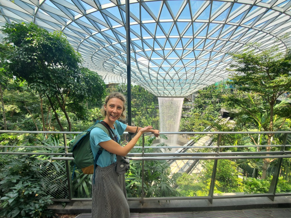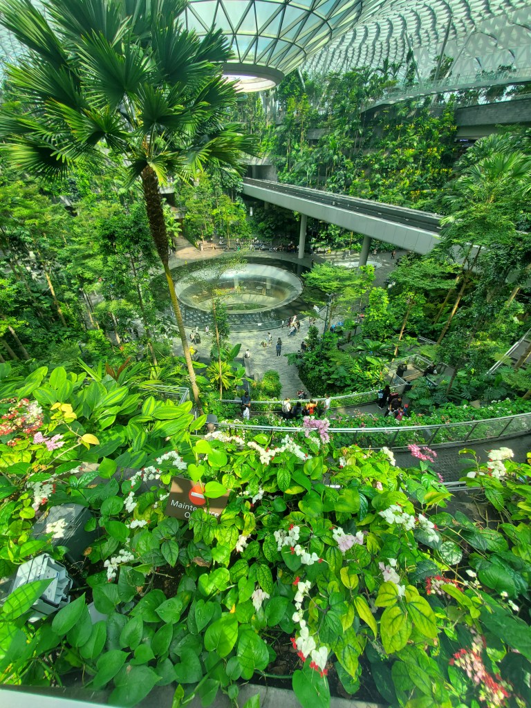 The whole room was lit up in magenta light. We each had a quick shower and set our alarms for 9am, sleeping very soundly. We woke up at 9am, dressed quickly and went down to free “breakfast” in the little seating area overlooking the Jewel (the waterfall wasn’t on yet). We had coffee and some croissants looking over the lush jungle setting of the jewel. We then packed up our little backpacks and set off to see the Jewel more thoroughly. We wandered the little jungle pathways on the Jewel, seeing so many types of tropical plant life.