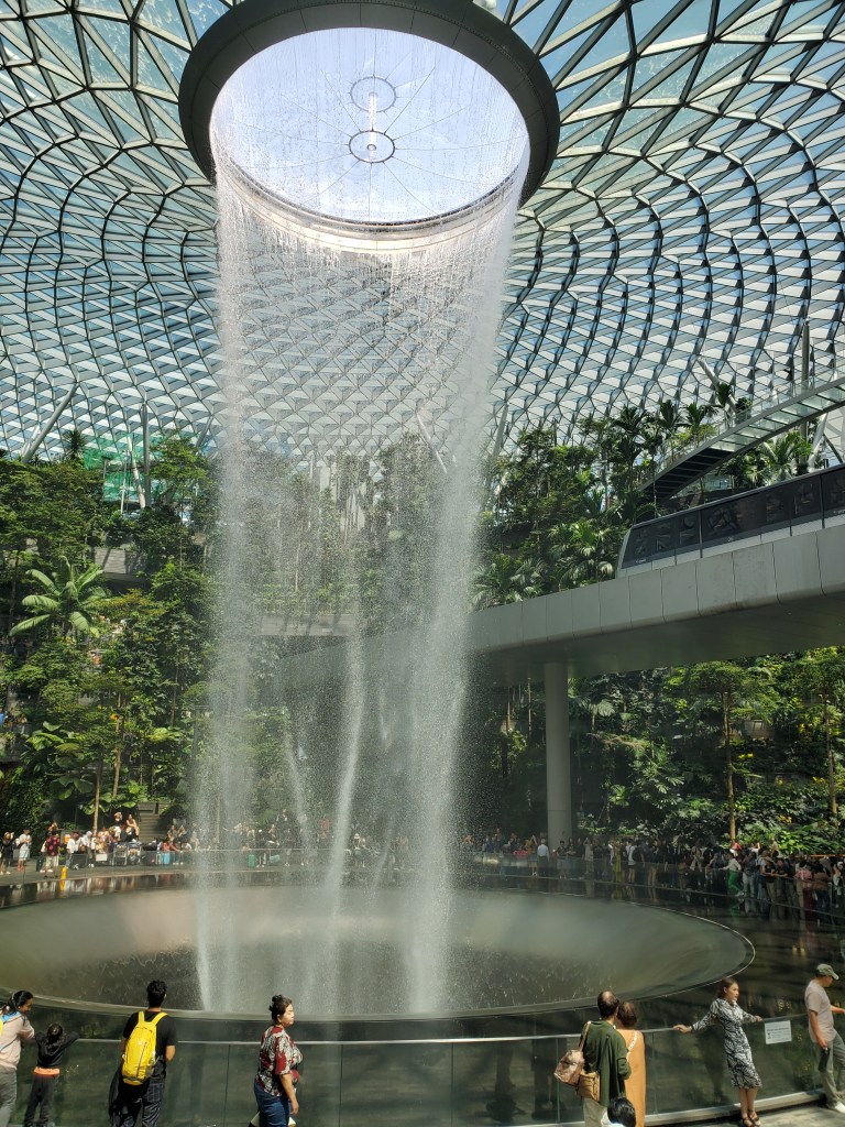 We walked through arrivals and then filled out a digital immigration card on my phone. Canada is one of the countries that can self scan through customs, so we did that and went through all the immigration stuff in minutes. We then had to find terminal one before finding the Jewel. There were very few people around as it was 1am and a lot of the hallways were dark. We found the dark jewel with the waterfalls turned off and the staff cleaning the pool. It was still so beautiful, but a bit eerie in the dark.