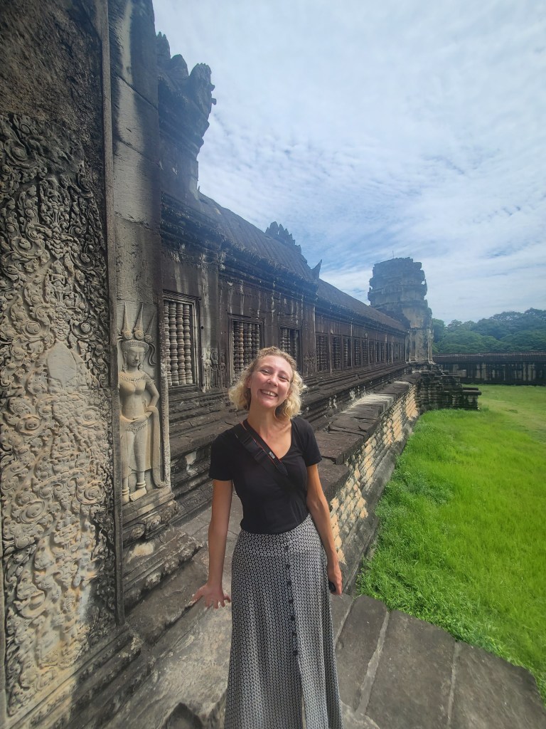 The main approach is exactly like I remembered it. You can see Angkor Wat reflected in the pools of water on either side of the symmetrical temple. We spent some time looking at the murals and carvings on the south side of the temple, which depict both Hindu and Buddhist stories. In total we spent one hour exploring Angkor Wat.