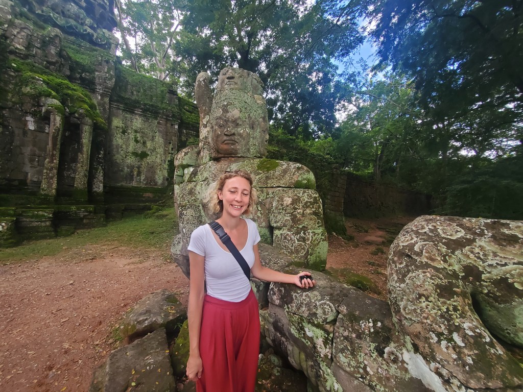 Our first stop was the North Gate of Angkor Wat, it was covered in moss and had a tree growing out of it. This was definitely the coolest gate yet. Mr.Kim asked if I wanted a photo taken with the gate and then proceeded to take quite a few photos of me!