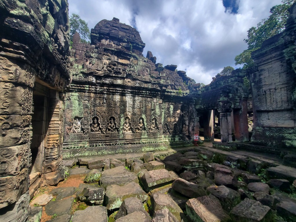 Next we drove to the former university, Preah Khan. The king had built this university for his wife and mother. Apparently his wife was very smart, and he had lost his wife in the war, so after the war he married her older sister. The university was very interesting and a lot like Ta Prohm, but less touristy. There was a lot of carving on every surface, showing pretty well what it would have looked like nine hundred years ago. The centre of the university was a stupa and then branched out in four directions from the centre like a cross. It was huge!! There was quite a bit of rubble, kind of like how Ta Prohm was when I visited in 2011.