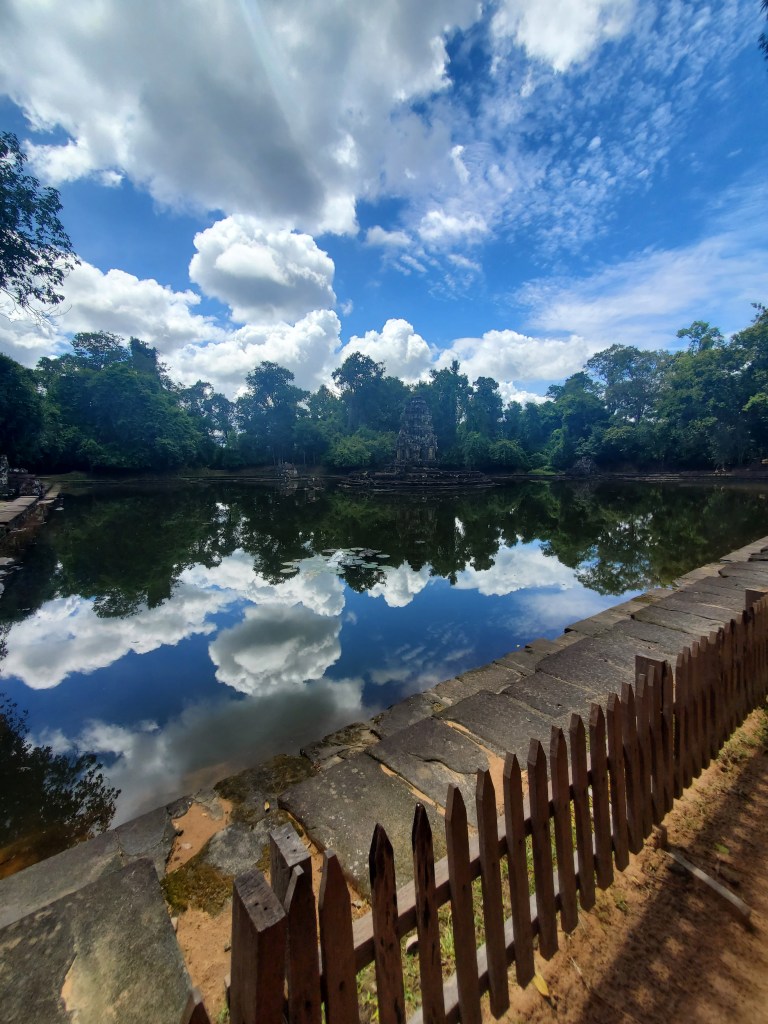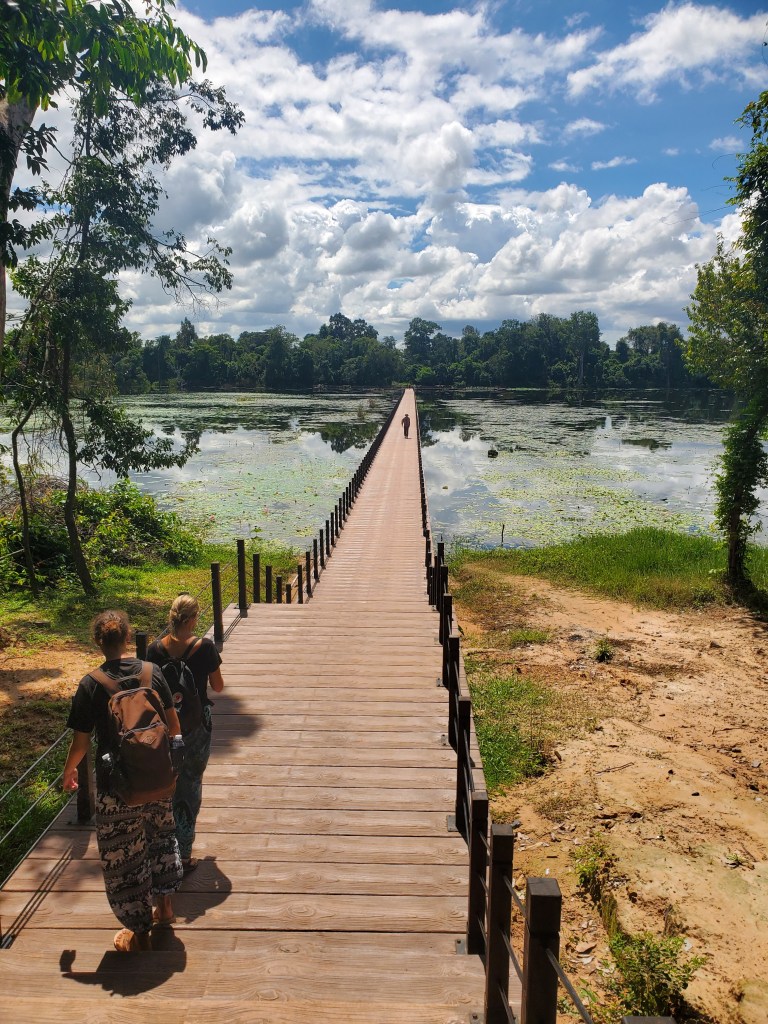 Next we headed to Neak Poan Temple, which used to be a hospital. Along the drive there I saw many pools full of lotus flowers, swamps full of tall grasses and cows and dogs walking along the side of the road. Honestly, the journey in the tuk tuk is the main highlight! Neak Poan Temple is situated in the middle of a lake and cross over to it over a long bridge lined on either side with lotuses and petrified trees sticking up out of the water. The temple itself is mostly made up of natural elements. After crossing the water you walk through the jungle and end up at a temple. Because it was just after the rainy season, most of the temple was under water. The temple is shaped like a cross. Each of the four gates leading to the centre have a statue; human, horse, lion and bull. It was believed that bathing here would balance the elements in the bather and cure them. Each pool is also associated with an element. After walking back across the bridge from the lake we headed to the next stop.