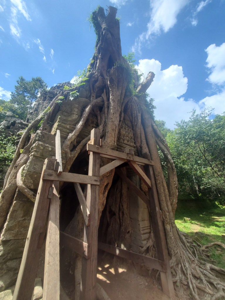Ta Som was a very long temple with little court yards along the way. My favourite part of this temple was the furthest point, right before the temple dissolves into the jungle, you walk through a final gate.. Once you emerge from the tunnel the opening is completely enveloped by a giant tree. The tree top had been chopped down, but the roots had long ago intertwined themselves with the bricks of the gateway. There are huge roots inside the tunnel too! From the outside the gate way looked more like a tree house, or a fantastical woodland creature’s dream house.