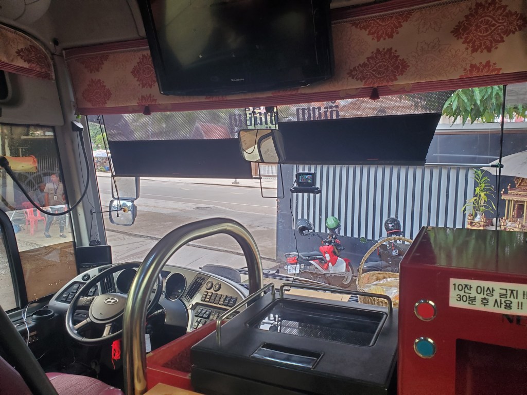 We checked out at 8 and paid for our arranged tuk tuk to take us to the Giant Ibis bus terminal for 8:30. Mr.Kim showed up to drie us, he was such a super sweet guy! He said to JIves “oh he is alive” (as Jives had been sick and missed out tour the day before). The ride to the bus station took maybe 15 minutes. Jives filmed a rap take along the way. We arrived at the bus station at 8:30 and we were first on board the bus. We got the front seats with a good view of the road. We were given a bun with anko paste (red bean) and water. We left about 5 minutes late as we had to wait for one last passenger. The bus was super comfortable, a little cold but I put on my sweater and we figured out how to turn our air vents off.