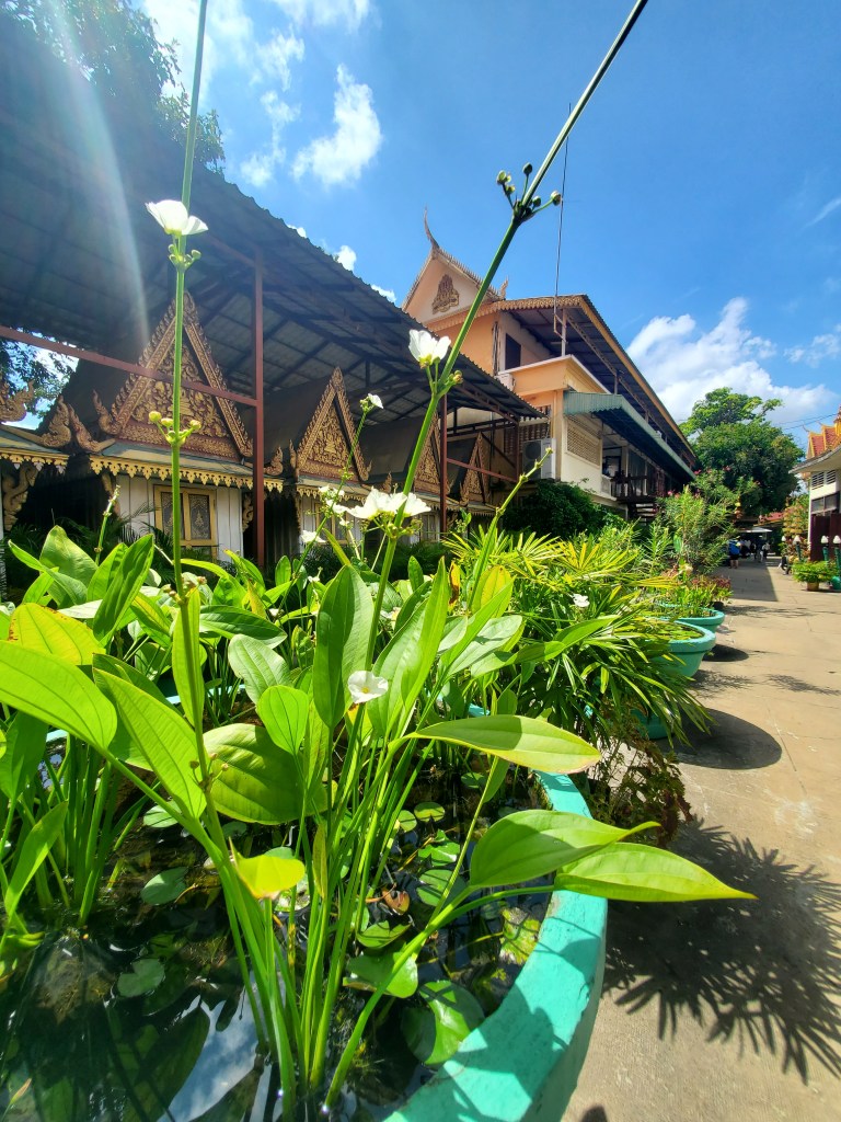 Next we walked a few blocks to a temple called “Ounalom Pagoda”. We peeked in one entrance, but a tuk tuk driver said it was closed. Whether or not the pagoda was closed, we don’t know (it’s a tuk tuk driver tactic to try and get you to go on a tour with them instead). We walked away and found a different entrance and looked around a bit at some stupas and a lot of beautiful plants.