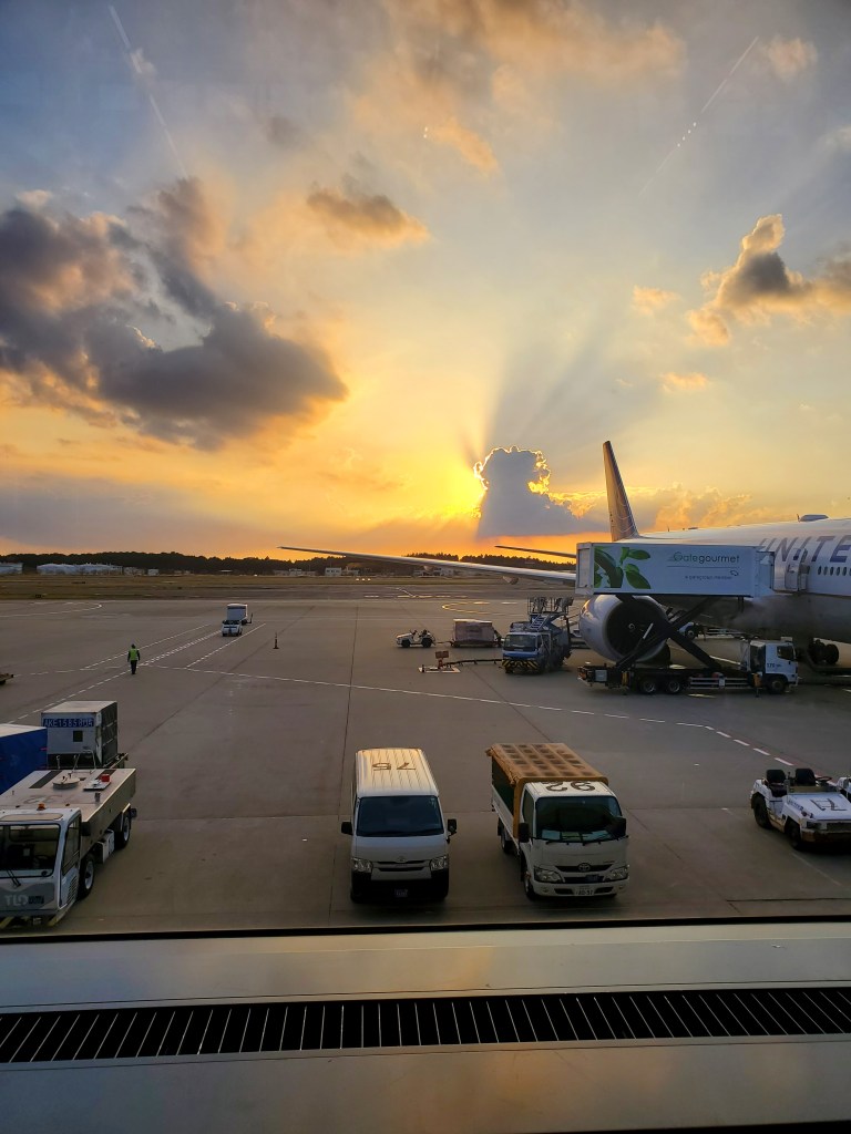 In Japan we had to go through security again, but once we were through we found a place to buy a Shonan Jump (weekly manga magazine) and some strong zeros that we enjoyed while watching the prettiest sunset.