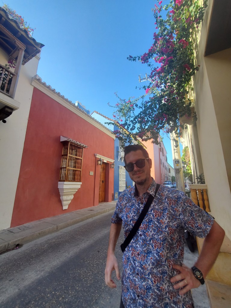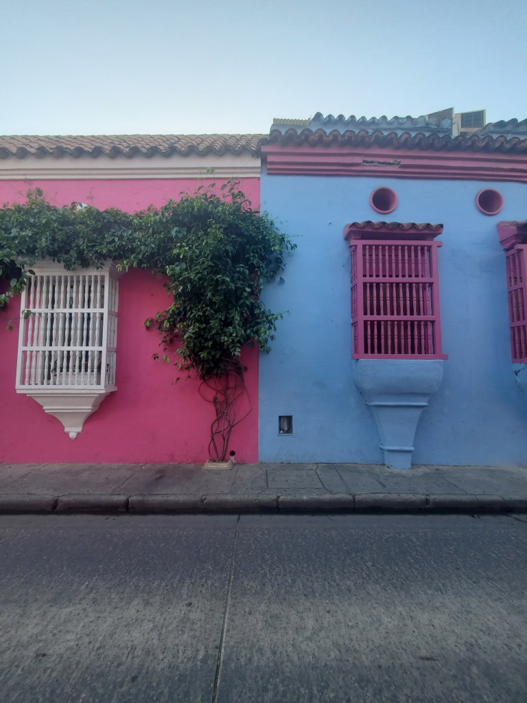 Our flight wasn’t a full hour, and we arrived at 11:04am in Cartagena. We walked off the plane, which I always love doing. It was 30 degrees celsius, but certainly warmer with the humidity. We then exited the airport and walked 30 minutes to our accommodation. We had to walk along the highway for a bit, and it was pretty windy with blowing sand in our eyes, but it wasn’t a bad walk and we got our first glimpse of the Caribbean Sea. Neither of us had seen the Caribbean before.