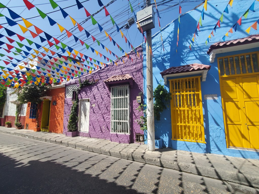 We then walked to the old town from our hotel. We walked down some beautifully colourful streets with colourful flags hanging over them, flapping in the breeze (or strong breeze.. Cartagena is super wind, but it does help with the 40 Celsius heat).