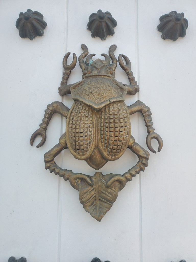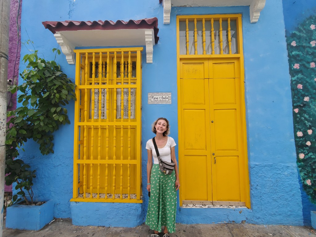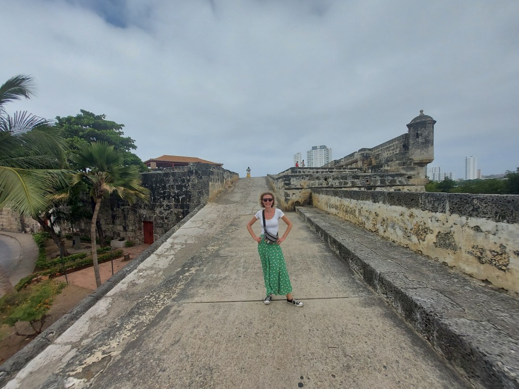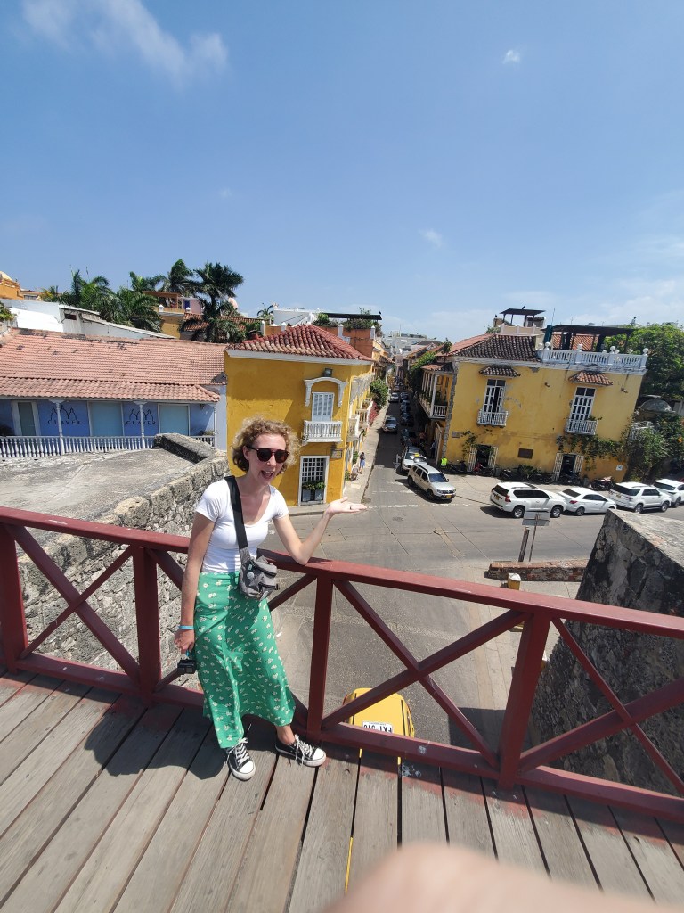 There were some old canons along the wall at points and lots of lovely views to the sea. The walls were built to defend this important port from pirates and outsiders. Cartagena was an important port for the Spanish as this is where all the gold and riches they took from South America would be loaded on boats and brought to Europe. We finally climbed off the wall and collected some more photos of door knockers on the walk back to our room.
