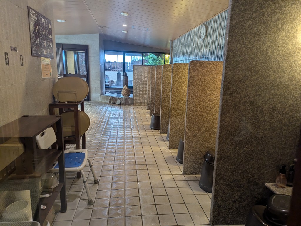 Back at the hotel I immediately headed to the onsen to warm up! There were two ladies in the bath, but just leaving. I soaked outside in the outdoor bath for quite awhile, under the overhang to keep the rainwater off my face. After a good long soak, Jives and I sat in the manga room and had a drink and relaxed.