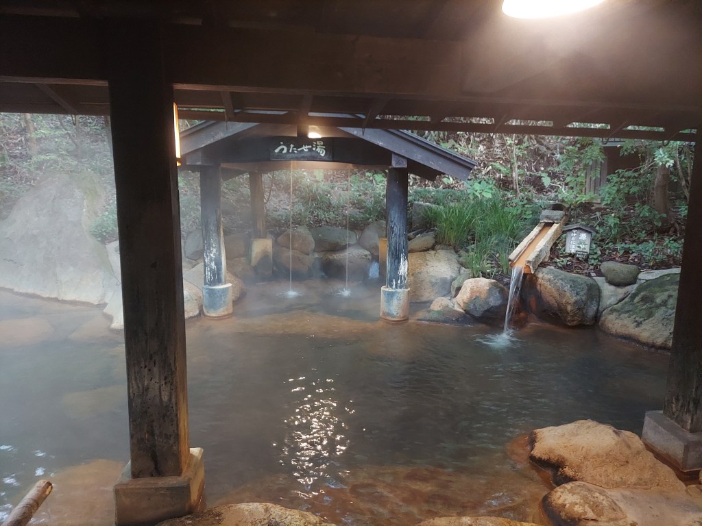 The outdoor bath at Sanga Ryokan in Kurokawa, Aso, Kumamoto, Kyushu Japan