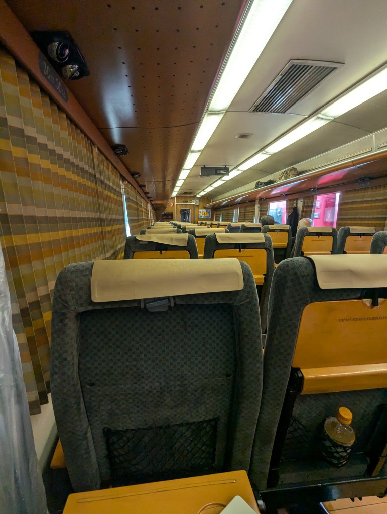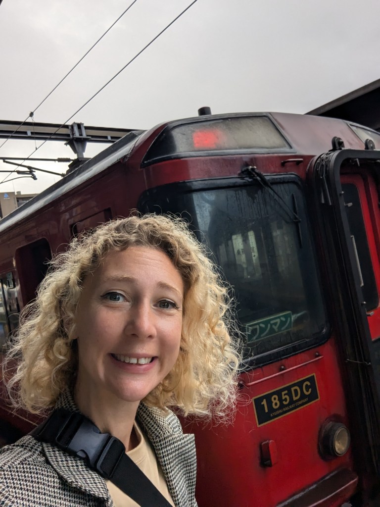 I woke up early to have a bath before we checked out. Jives also went. The baths in Oita might have been my favourite thus far, as both  the indoor and outdoor baths were huge! I could soak in the water all day, but that is probably not great for your health. We sat and enjoyed a coffee from the vending machine before packing up and heading to the train station at 7am ish for our 8am train to Aso. We got some snacks and sat in a little waiting area on the platform before our train arrived.