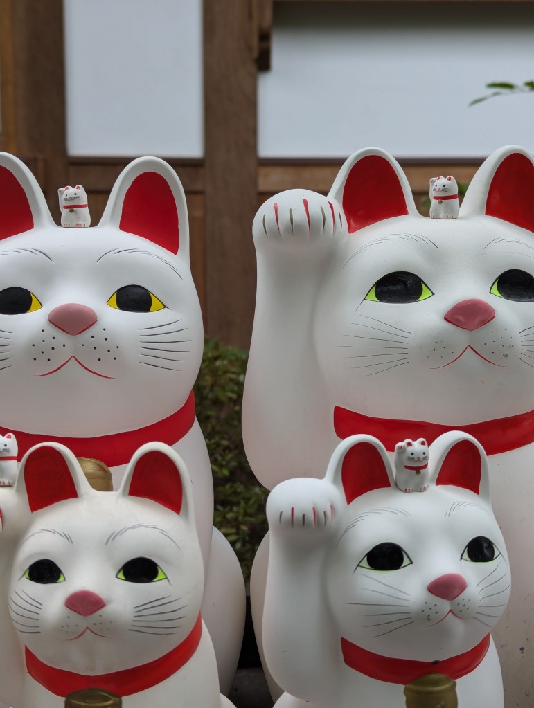 We then walked to Gotokuji temple. I was much busier than the last time we were there. You could barely walk through the section with the cats, let alone take a picture. A group of Indian tourists were taking photos for so long, blocking everything from view. I gave up trying to take any photos. I went to the temple shop and bought the size #2 cat statue for 800Yen.