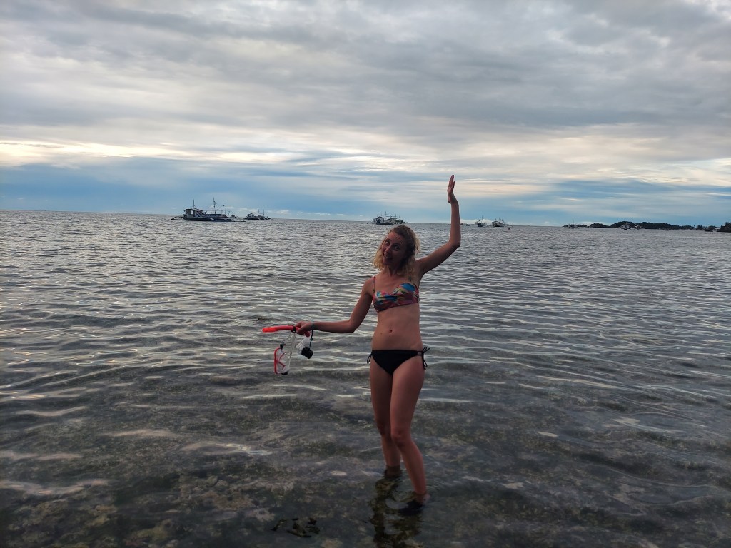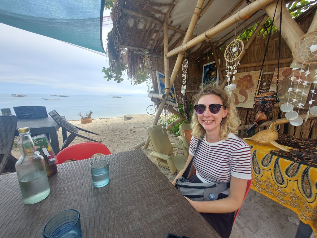 If we had thought our driver from Moal Boal to Cebu was fast and aggressive, he had NOTHING on this guy. This guy drove his twelve seater van like a stolen lambrogini, veering and bobbing between cars and scooters in traffic jams and despite the torrential rain. I had to actively try not to look as he drove as it caused me so much anxiety. As we made it to the countryside, he would accelerate through school zones. Every time the driver did something particularly risky while driving, he would cross himself and grab his rosary he had tied to the rearview mirror. Two hours into the journey we had a brief stop for the driver to have a meal. I bought a cappuccino for something to do. After about ten minutes we jumped back in our stolen lambrogini van and sped off. It was a four hour drive in total from Cebu to Maya Port in the north of Cebu.