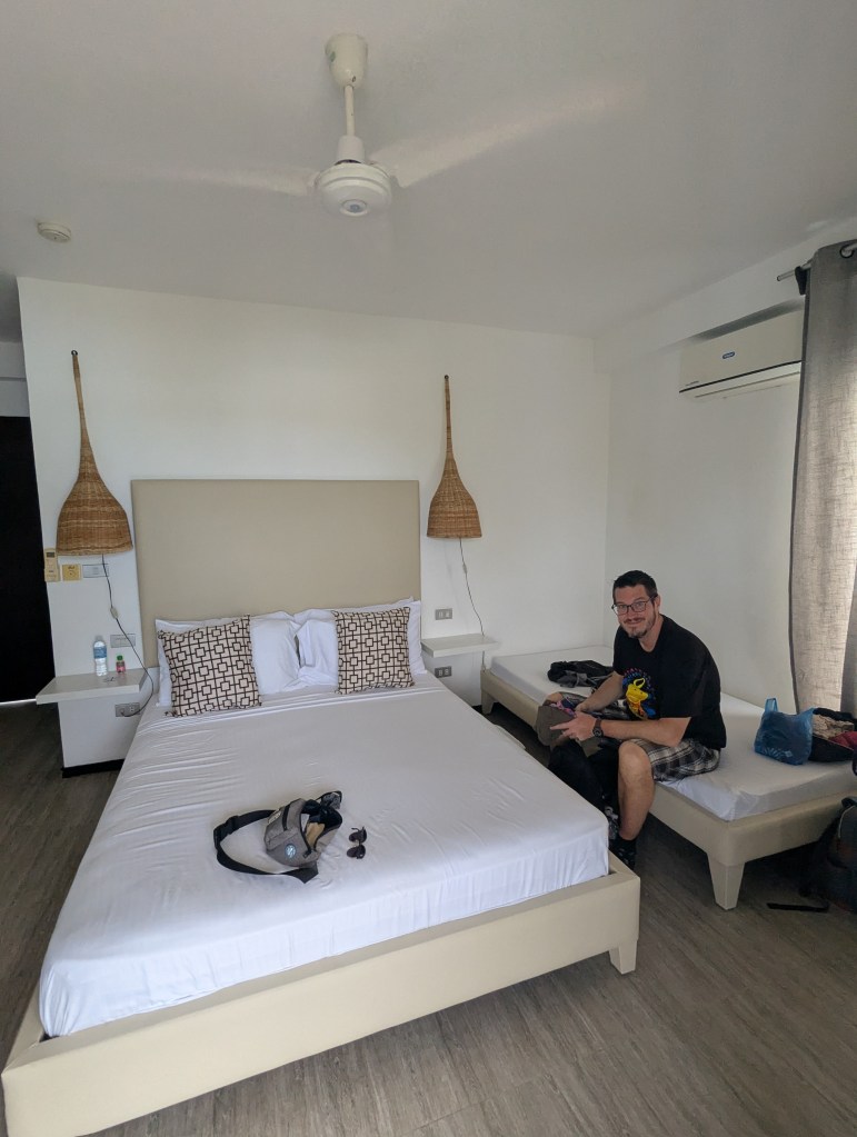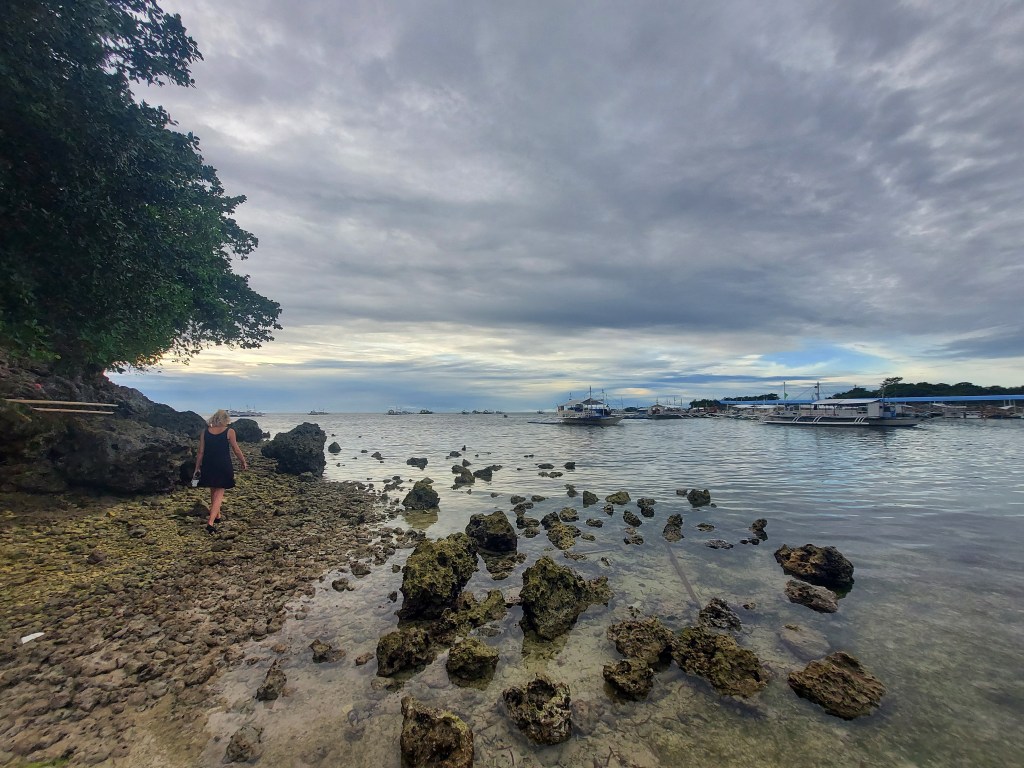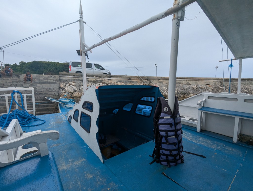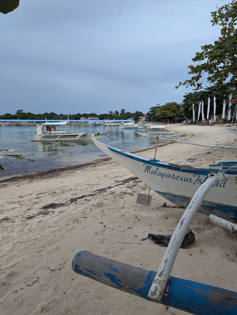 We arrived at the port and got out to pay the environmental fee at the booth on the pier. It was 300 pesos for two people. We then got our bags and boarded our private boat to Malapascua. A man ran up to our car as we were getting out and opened the trunk to carry our bags. He was shocked to find there were not any bags in the trunk, as we travel with personal sized backpacks only. We walked down the gangway and boarded the boat, I was still so shaken by the accident.