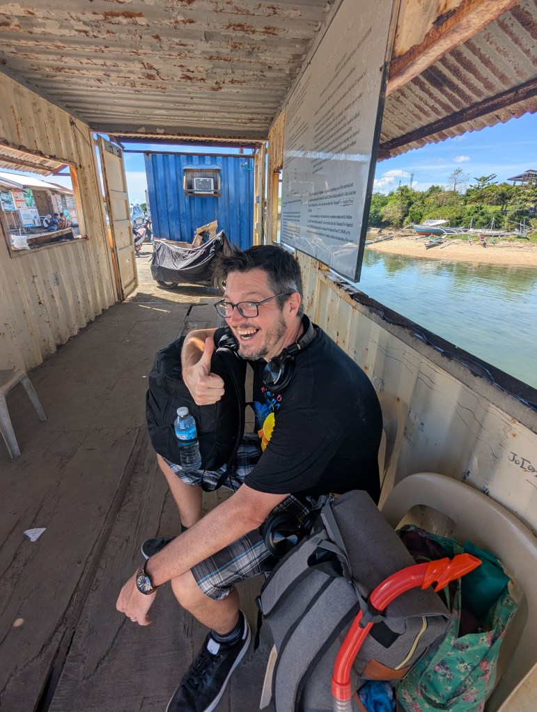 As we arrived at Maya port there was a man on his boat singing loud karaoke in a very off key voice. Karaoke seems to be so popular in the Philippines. We waited for 15 minutes for our driver. His car was much smaller than the car on the way over and the seat was a bit difficult to sit on as it kept sliding. But the driver was a safe driver and that was our main concern after our last driver killed a dog and risked our lives with every turn. The ride took about four hours with quite a bit of traffic coming into Cebu city. There was a youth marching band in the street performing. Along the drive I saw a restaurant called “Wang Dong” and another called “Hug diner”. I also saw a sign that said “a good driver is a good lover” , a tattoo shop called “Skin Head Tattoo” (sadly) , a coffee shop called “Boss Me” and a lovely variety of colourful jeepies decorated with everything from Hello Kitty to Jesus to Bumblebee from Transformers. I also saw a twenty foot tall Astro Boy. Closer to Cebu we were driving by a professional looking cyclist and he waved and smiled and gave me the finger hearts I associate with BTS. I waved and smiled back, giving him some reciprocal finger hearts! What a lovely interaction!
