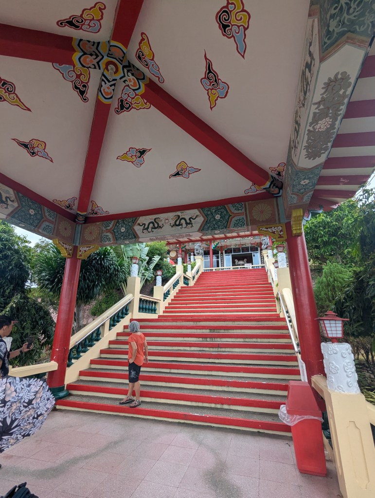 We dragged our feet to check out as close to 12pm as possible, having coffees in the room before going down for breakfast. Breakfast was in the reception area. It was an okay breakfast, the egg drop soup was lovely, but there weren’t many options compared to what our spoiled asses had become used to. We then swam in the lovely pool for an hour as we had a load of washing and drying going. We finally did check out at 11:30am and asked the hotel if they would hold our bags, which they gladly did. We then set off on a 45 minutes walking adventure to the Taoist Temple up in the hills of Cebu.